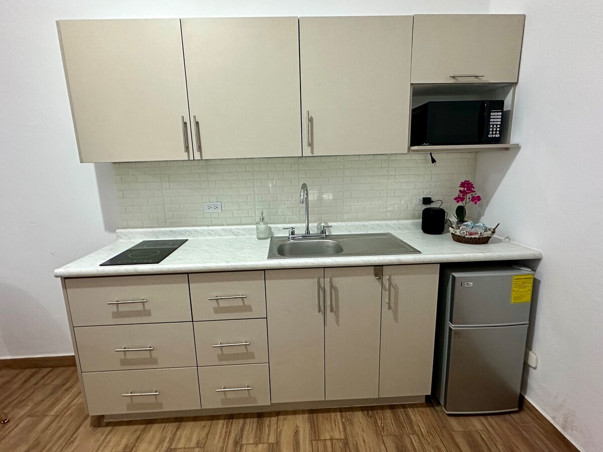 Loft confortevole e attrezzato fino a 2 persone, potrebbero essere 4 a un costo aggiuntivo. Situato in una frazione chiusa con ingresso indipendente a una casa che è anche airbnb e spazio per il parcheggio privato. La sua posizione è imbattibile, vicino a strade veloci e con accesso a pochi passi da: Starbucks, farmacia, banca e una varietà di ristoranti. Dotato di angolo cottura, macchina per il caffè, frullatore a immersione, forno a microonde, bar, bagno, armadio, smart tv 40” minisplit freddo/caldo, burrito e ferro da stiro.
