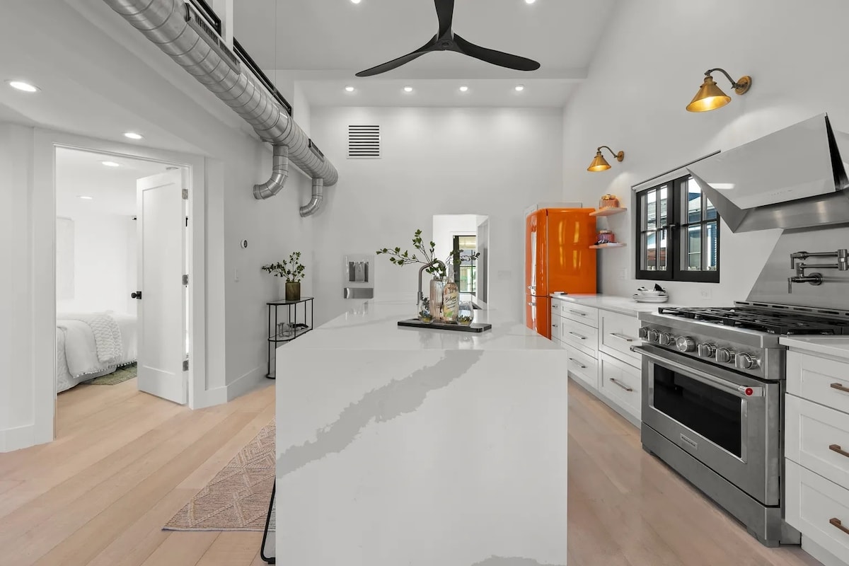 Il nostro Boutique Luxury Brownstown offre agli ospiti servizi e stile di prima classe, a un isolato da High Street e dal cuore dello Short North, con ristoranti, negozi e bar. Ristrutturato nel 2022, lo spazio presenta pavimenti originali in legno massello rifiniti con una splendida scala, finiture di cucina di alta gamma con piani in quarzo e due bagni privati con piastrelle moderne e docce di grandi dimensioni con panche. Se sei alla ricerca di un'esperienza boutique, non c'è niente di meglio a Columbus