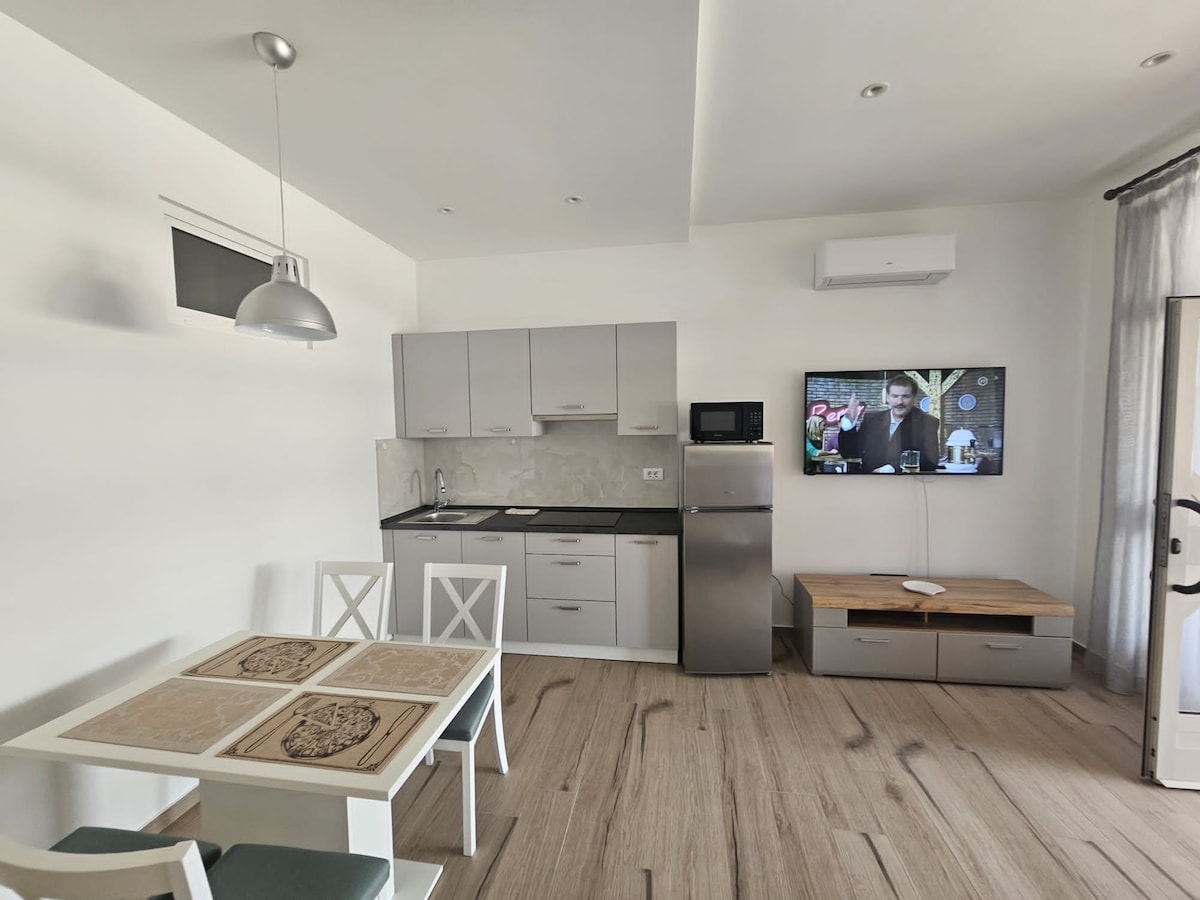 Parcheggio facile. Appartamento di 30 m² + balcone di 10 m². Esposizione: lato sud, soleggiato. Vista sul mare! A due minuti a piedi dalla spiaggia, con un bar sulla spiaggia! A 2 minuti a piedi dalla nuovissima piscina comunale di Pola. A 5 minuti a piedi piedi dal mercato di Veruda e a 7 minuti a piedi dal più grande centro commerciale di Pola, Max City. Buoni ristoranti nella zona e un ristorante al piano terra dell'edificio. Il centro di Pola dista circa 15-20 minuti a piedi. Nel prezzo sono incluse due biciclette (da uomo e da donna).