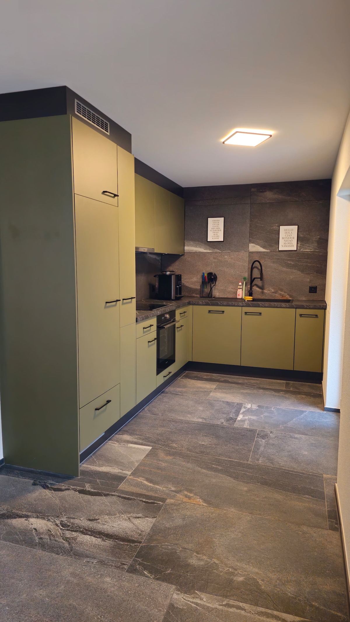 Appartamento moderno, molto grande, con soggiorno a pianta aperta con accogliente area salotto e design elegante, 88m2 al piano terra. La cucina a vista è completamente attrezzata e dispone di un pratico bancone per la colazione. Pavimento di alta qualità con riscaldamento a pavimento e mobili moderni garantiscono una piacevole sensazione di benessere. Il bagno convince con un elegante design in pietra naturale. È dotato di una spaziosa doccia con soffione a pioggia, un elegante lavabo, uno specchio illuminato con lavatrice e asciugatrice