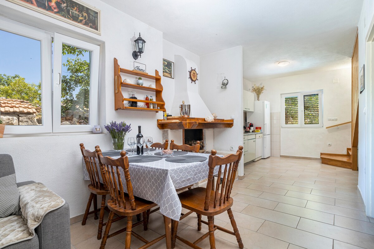 Villa Domenika è una casa antica ma ristrutturata che si trova in un tranquillo villaggio collinare con una vista mozzafiato sul mare aperto. Questo villaggio remoto offre un'atmosfera tranquilla e silenziosa. Si trova lontano dalla folla e dal traffico, ma abbastanza vicino da raggiungere facilmente mercati, ristoranti e spiagge. La spiaggia più vicina si trova a 5 minuti di distanza. Il ristorante si trova sulla spiaggia. Il mercato più vicino è a 10 minuti di auto. Questo villaggio si trova proprio tra due città, Hvar e Stari Grad, entrambe a 5 km di distanza