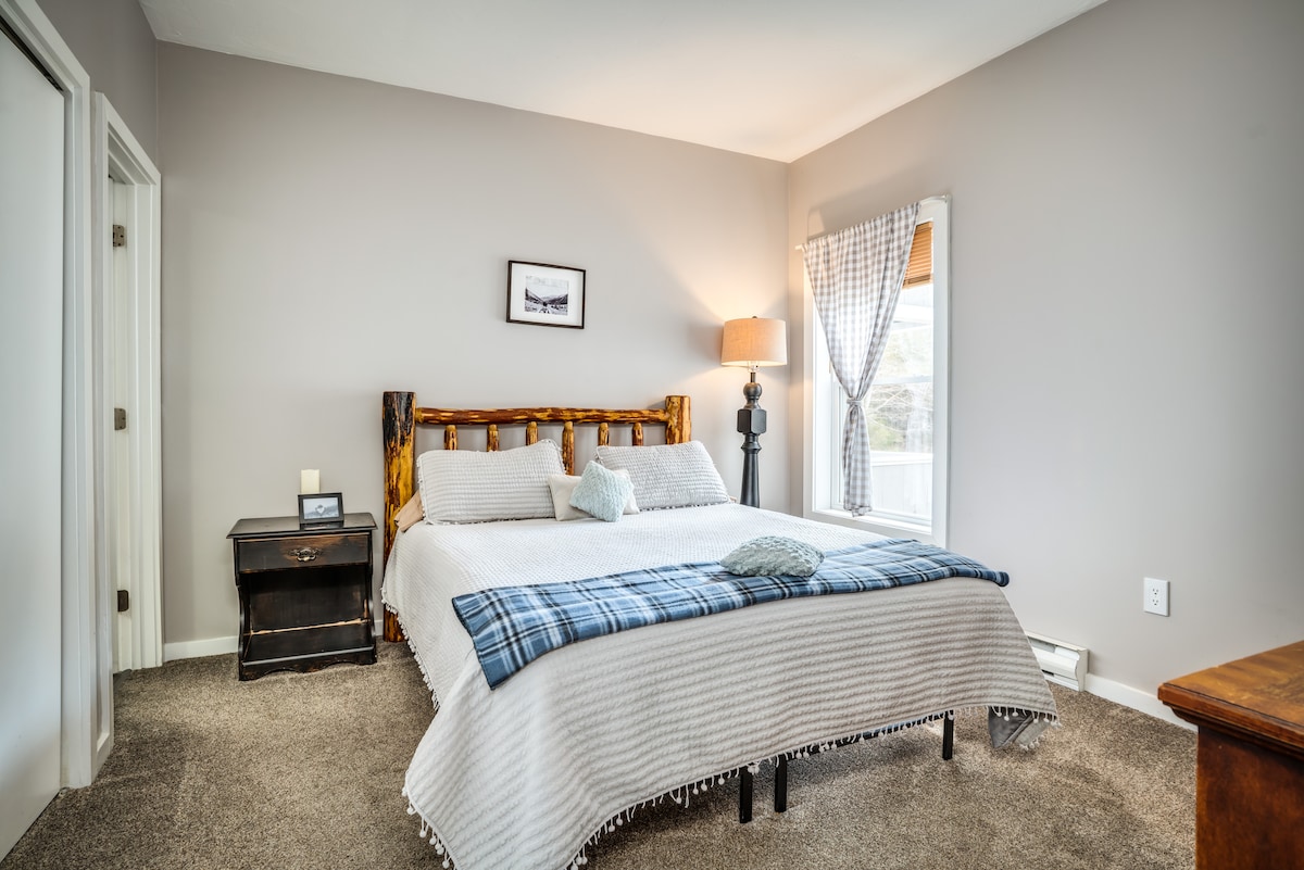 Luminosa, soleggiata e tranquilla unità abitativa con 3 camere da letto nel cuore delle White Mountains. Bellissimo posto in Alpine Village con un ampio prato e una grande terrazza per le attività ricreative all'aperto. Tanta luce naturale. Ampia cucina con piani di lavoro in granito ed elettrodomestici in acciaio inox. Può ospitare comodamente 9 persone. Ottima posizione, a pochi passi dal centro di N. Ristoranti e negozi di Woodstock, a breve distanza in auto da Loon, Cannon e dal resto delle White Mountains, per divertirsi tutto l'anno!