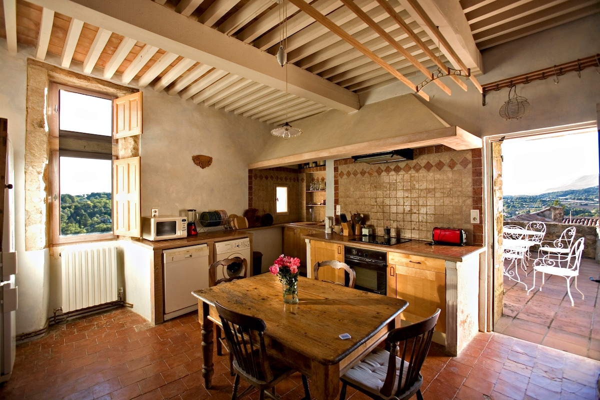Nel cuore del Luberon, questa casa unica e ristrutturata, con 4 camere da letto, si affaccia su un ettaro di terreno con vista sulla Sainte Victoire che permette di staccare la spina e godersi la natura e i giochi ... Troverai nel parco la tua piscina sicura aperta da maggio a settembre e altalene. Ti forniamo caffè, marmellate, saponi, gel doccia, shampoo e biancheria per la casa per il tuo soggiorno. I pasti fatti in casa sono disponibili su richiesta.