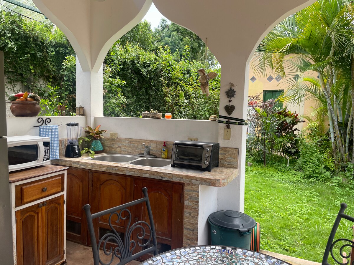 Rilassati in questo spazio tranquillo in posizione centrale. Un luogo unico che condivide una piscina e un padiglione in un giardino. Questa casita dispone di bagno privato con doccia esterna in giardino, aria condizionata, WiFi . Il letto matrimoniale ha lenzuola in 100%cotone e una zanzariera. Il padiglione è dotato di frigorifero, lavandino, forno a microonde, macchina del caffè, frullatore , fornello elettrico singolo e forno tostapane oltre a tavoli e sedie per cenare e rilassarsi.***Non c'è acqua calda, ma la temperatura dell'acqua non è fredda.