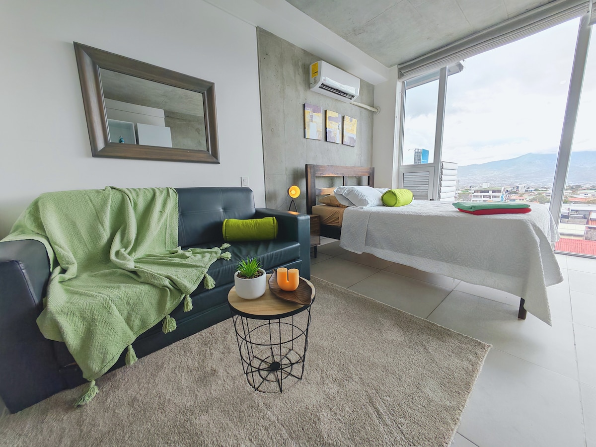 Non c'è modo migliore di vivere la bellezza di San José che dormire nel cuore della città con una vista spettacolare sul nord della capitale. Il paesaggio del vulcano Irazú all'orizzonte sarà il modo perfetto per godersi l'alba nel tuo letto. Questo appartamento è perfetto per iniziare la vostra esperienza in Costa Rica, rilassarsi dopo un viaggio di lavoro, o trascorrere una notte romantica con il vostro partner. Tutto da una zona privilegiata a pochi passi da ristoranti e negozi.