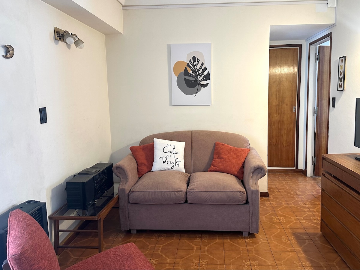 Monolocale moderno, luminoso e silenzioso nel centro di Mar del Plata. A soli 700 metri dalla spiaggia di La Perla e a 300 metri da Plaza Mitre. Perfetta per coppie o per chi lavora da remoto. WiFi ✔ veloce - 100 mb Riscaldatore ✔ a gas ✔ Cucina completa ✔ Smart TV ✔ Parcheggio a 100 m A 200 metri dal centro commerciale Los Gallegos e dalla via pedonale San Martín. Per soggiorni superiori a 5 notti, forniamo un cambio di asciugamani e lenzuola.