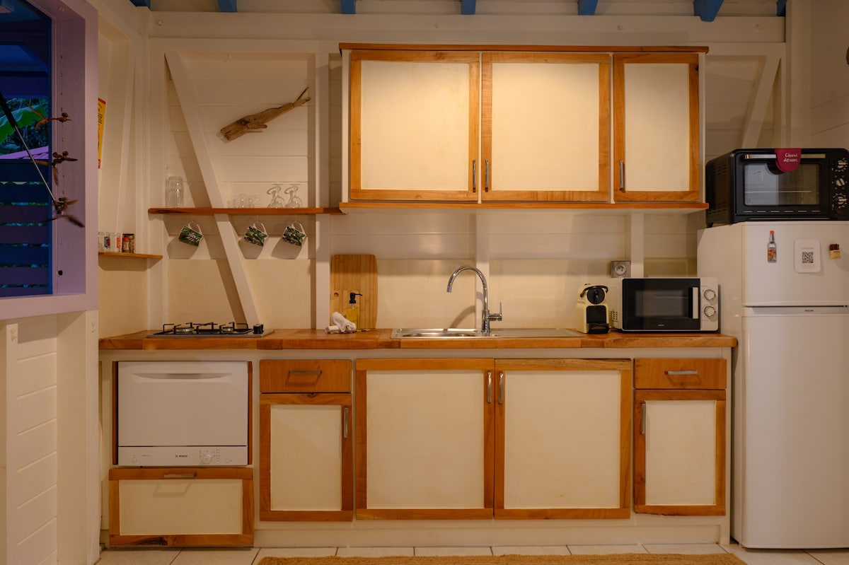 Vi accoglieremo con piacere in questo bungalow in legno con la sua vasca idromassaggio privata, pronti a ritrovare fascino e comfort per un soggiorno rilassante. È classificato 3 stelle e si trova a Borée Capesterre in campagna, a circa 15 minuti dalle spiagge e dai negozi. La zona è tranquilla, rilassante e nessun odore di sargasso arriva dalla nostra parte. La biancheria da letto è fornita per il soggiorno così come gli asciugamani da doccia. Vi invito a venire a godervi questo spazio e non rimarrete delusi!