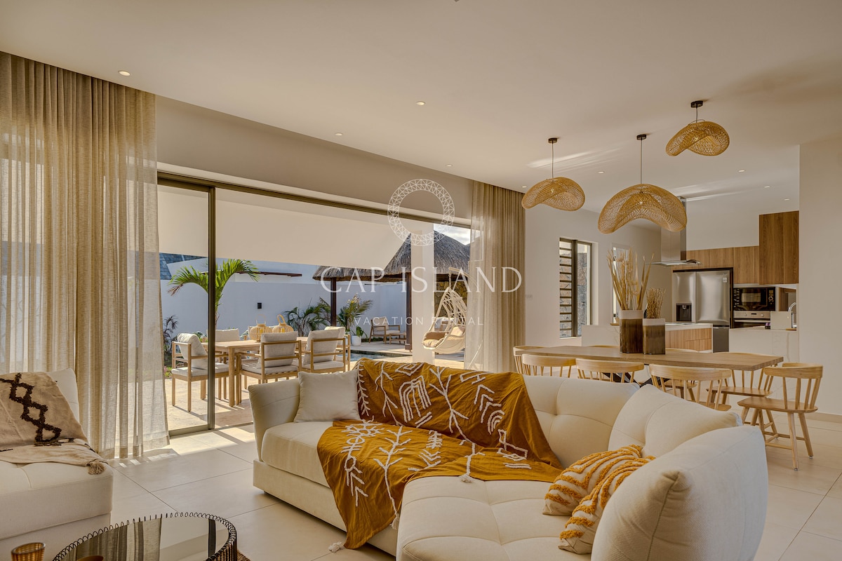 Your perfect getaway villa for a peaceful yet family friendly experience... Beautiful twin bedroom villa located in a well maintained gated estate with own swimming pools. The villa is located within a short distance from Melville and Grand Gaube fishing villages. Two public beaches are within a short 10 minutes walk, with a scenic white sandy beach on the left and another more rugged beach on the right. This warm villa welcomes family with children or couples.