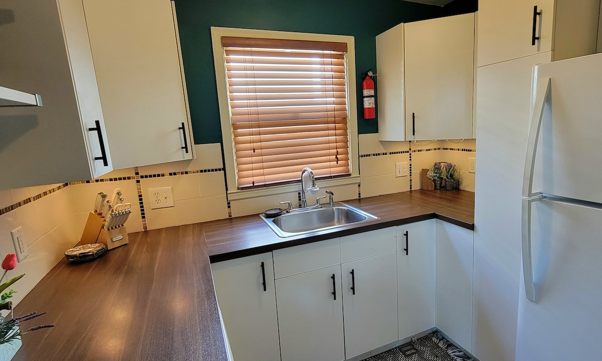 Goditi la vista di Manhattan dalla nostra tranquilla suite in collina con due letti/1 bagno nel seminterrato, con ingresso privato, termostato, wifi gratuito, bagno completo con vasca/doccia e una stanza con mini frigo, forno a microonde e TV. Parcheggio in loco con gradini in pietra che conducono a un ingresso privato nel cortile sul retro, con un braciere per rilassarsi sotto le stelle. Facile accesso al campus della KSU, allo stadio, ad Aggieville e a Ft. Riley. Gli ospiti accedono allo spazio separato con self check-in. I proprietari vivono al piano superiore.