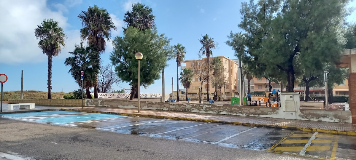 Porta la tua famiglia a rilassarsi e trascorrere momenti fantastici insieme. L'appartamento è composto da una camera da letto dotata di un grande letto matrimoniale con la possibilità di allestire fino a due letti singoli, un soggiorno dotato di divano letto, dove due persone dormono comodamente, una culla da viaggio, 2 min dalla spiaggia e un lungomare di fronte alla spiaggia, dove si trovano ristoranti e boutique. A 5min dai negozi, farmacie chiuse, che lo rende sicuro per i bambini, ci sono tre piscine.