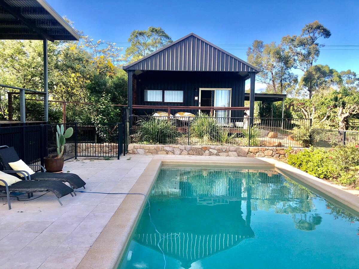 Situato su 40 acri privati, "The Birdsnest" è il nostro moderno chalet più piccolo con aria condizionata. È composto da un soggiorno/camera da letto open space con letto a due piazze e divano che si converte in letto matrimoniale per gli ospiti aggiuntivi. Bagno separato e ampia terrazza coperta con vista mozzafiato sulla campagna. Piscina privata sicura nel fiume. Wifi gratuito, TV a schermo piatto. Nella proprietà sono presenti altri 2 chalet per ospitare famiglie o gruppi più numerosi. A 7 minuti dal Paronella Park. A causa del Covid 19, non forniamo più la colazione.
