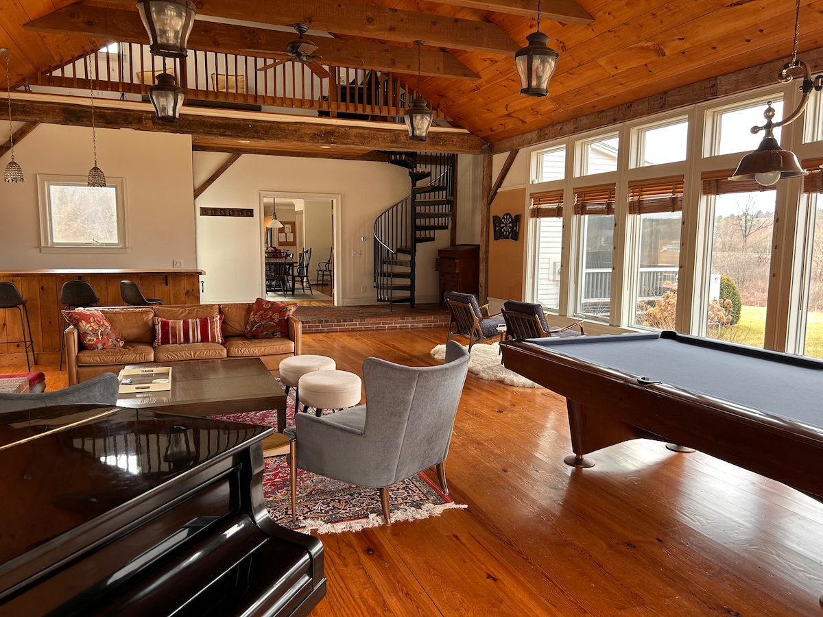 Il fascino delle Berkshire in questa fattoria con travi a vista del 1800 completamente ristrutturata, situata su 5 acri di terreno simile a un parco. Offre un open space con soggiorno, sala da pranzo e cucina con piano cottura a gas e camino a gas su 3 lati, una bella veranda, una suite padronale al piano inferiore e 2 camere da letto, bagno e salotto al piano superiore. Ampia terrazza con vista sulla vasta proprietà Comodamente situato tra le affascinanti città di Stockbridge, Lenox e Great Barrington. Siamo circondati da 4 aree sciistiche, la più vicina a 10 minuti! Anche molte opzioni per la ristorazione.