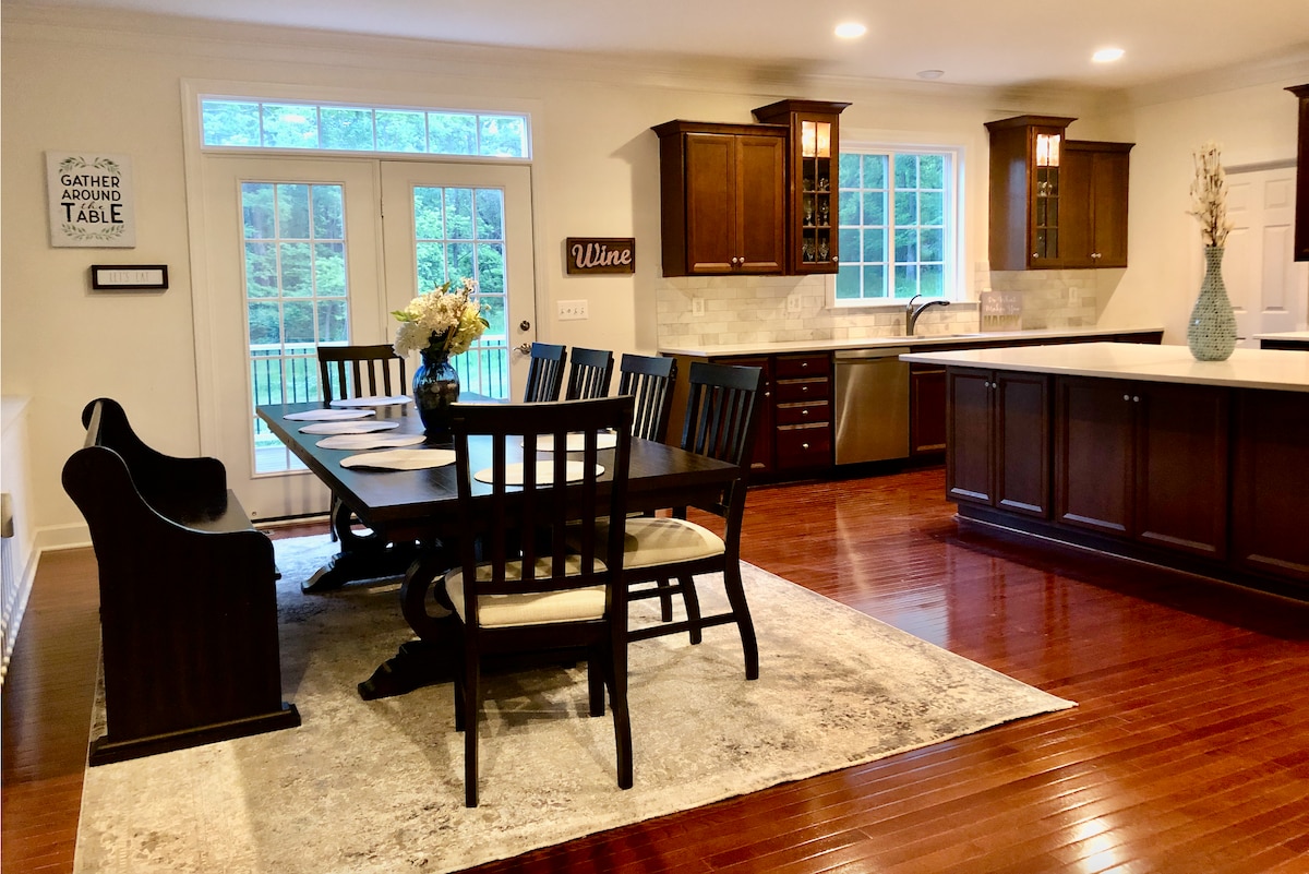Ti diamo il benvenuto in questa splendida vacanza privata monofamiliare su 2 livelli, situata nello storico quartiere di Manassas, al largo della Virginia State Route 234. Questo incantevole rifugio si trova su 2 ettari di terreno, è stato ristrutturato sia all'interno che all'esterno pensando ai nostri ospiti. Tre camere da letto/due bagni al piano principale e un enorme seminterrato finito per ospitare comodamente 10 persone. Cucina completamente attrezzata, ufficio in casa, palestra, lavatrice e asciugatrice. Se sei in città per lavoro o per piacere, questa casa è tutto ciò di cui avrai bisogno per il tuo soggiorno.
