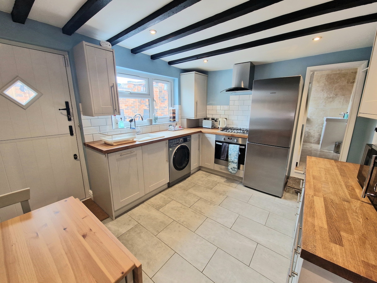 Il cottage Great Bowden è caratterizzato da un design moderno che utilizza legno di cedro del Regno Unito per favorire la sostenibilità, con tutti i servizi a portata di mano. Ideale per fuggire dal trambusto e rilassarsi. Separato/adiacente alla casa principale, in una favolosa posizione centrale di Great Bowden. Forniamo tè e caffè in omaggio, con macchina Nespresso, tostapane e bollitore, insieme a un piccolo frigorifero, una smart TV Samsung e un forno a microonde. E quando fa caldo, abbiamo un ventilatore Dyson. Consentiamo l'accesso a 1 cane di piccola taglia; è previsto un supplemento di 10 £ per tutta la durata del soggiorno