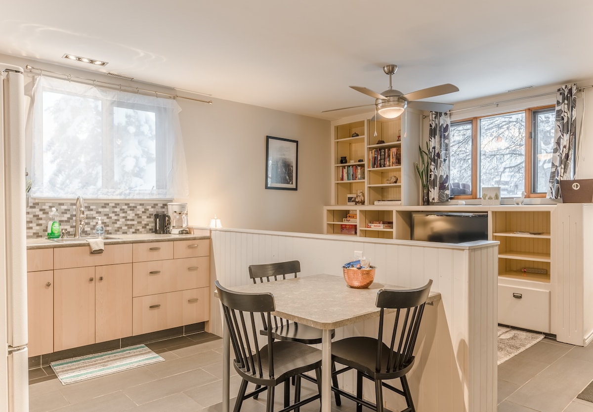 Suite seminterrata con 2 camere da letto splendidamente moderna e aggiornata, con ingresso indipendente con self check-in. Situata in un tranquillo vicolo cieco, la casa si trova a 10 minuti a piedi da ristoranti alla moda, bar, negozi di alimentari, negozi di liquori e sentieri escursionistici, e dista 3 isolati dall'Ospedale. In 2 minuti a piedi si raggiunge un incantevole sentiero in riva al lago, un luogo perfetto per ammirare l'aurora boreale. La fermata dell'autobus si trova dall'altra parte della strada, rendendo i viaggi in centro e nel centro storico veloci e comodi. Il parcheggio è gratuito nel vicolo cieco.