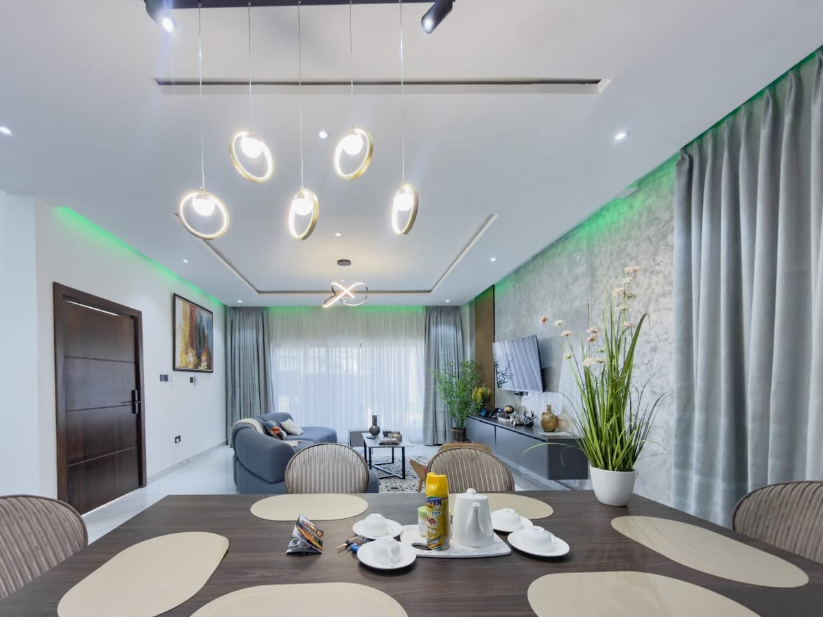 La tua famiglia sarà vicina a tutto quando soggiornerai in questo alloggio in posizione centrale. Comodamente nascosto in una comunità recintata e sicura a East Legon, a pochi minuti dal centro commerciale AnC, dai migliori ristoranti, dalla vita notturna e dall'aeroporto. Goditi una selezione di strutture comuni di prim 'ordine come un centro business, una sala lettura, una palestra e una spa completamente attrezzate, una piscina rinfrescante, un bar e un salotto intimi e un'area giochi dedicata per i bambini.