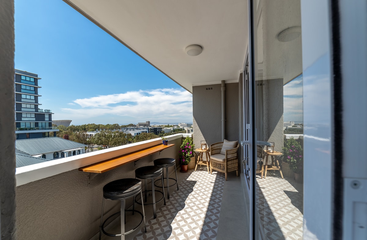 Our apartment is light and airy, with north-facing views. Walk to the V&A Waterfront, plus restaurants and cafés right on your doorstep. The apartment has an open-plan, modern fitted kitchen and lounge area. The position is perfect for exploring Cape Town and the Green Point restaurants and cafés. Giovanni's Deli and Jason's Bakery are on your doorstep. Perfectly apartment for Green Point stadium events! Secure parking included!