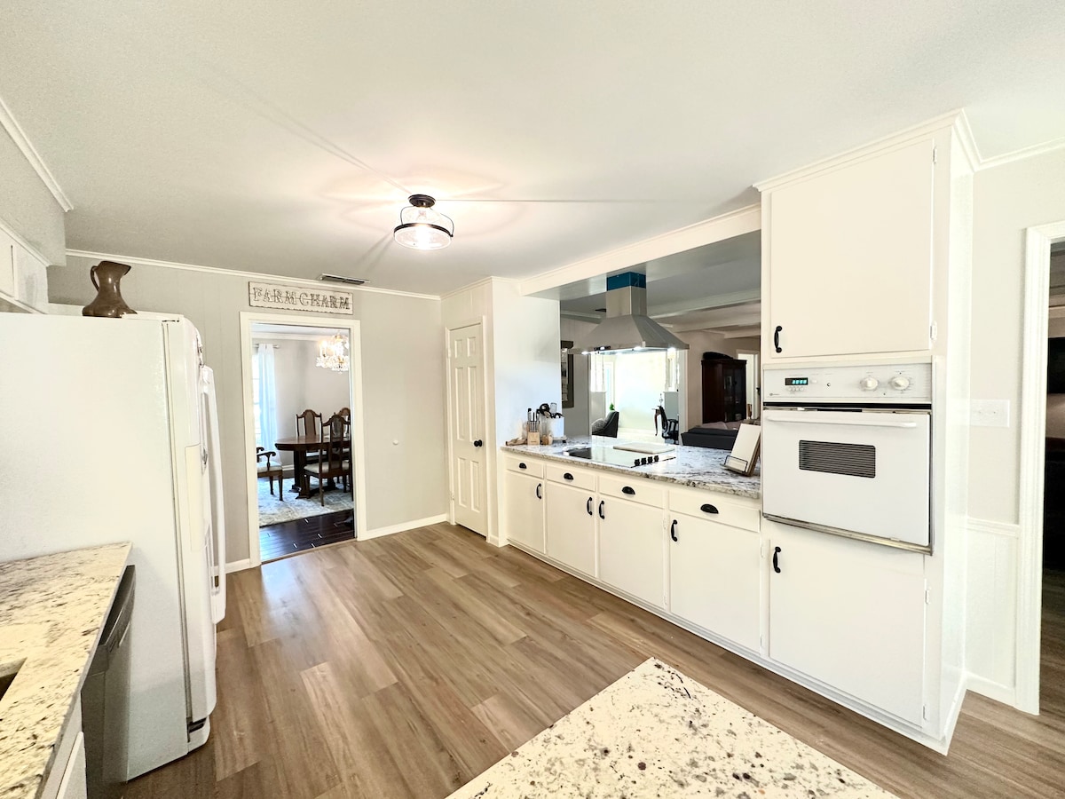 Soggiorna a Modern Comfort, una casa con 3 camere da letto e 2 bagni splendidamente ristrutturata a Longview, in Texas. Questo spazio adatto alle famiglie presenta una disposizione a pianta aperta, abbondante luce naturale e un accogliente camino elettrico. Goditi un cortile privato completamente recintato, completo di patio arredato e completamente coperto, in una tranquilla strada a senso unico a pochi passi da parchi e campi da gioco. Modern Comfort offre un soggiorno rilassante e conveniente a pochi minuti dal centro, dai ristoranti e dai negozi.