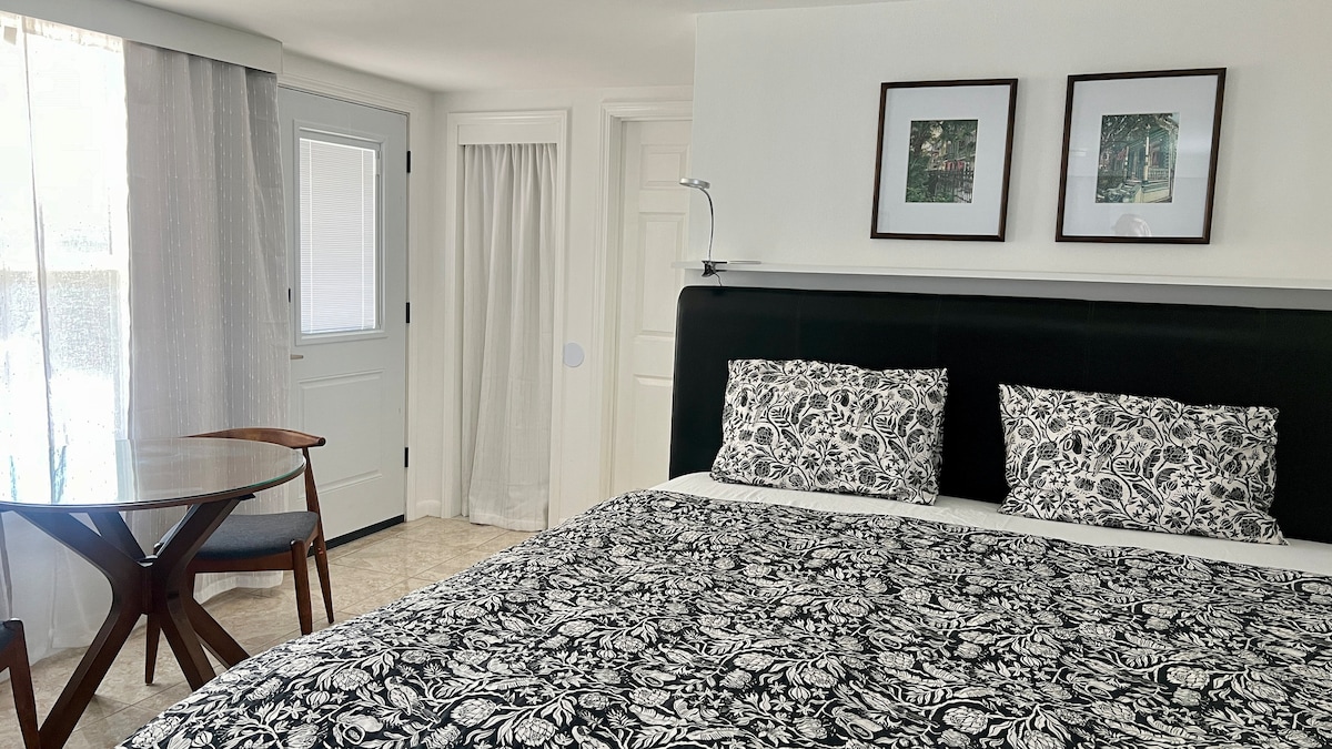 Rilassati e goditi questa suite privata in affitto nel Lower Garden District, vicino a Magazine Street. Questo classico cottage creolo completamente ristrutturato vanta soffitti ariosi alti 4 metri, pavimenti in pino, un letto king-size davvero comodo, mobili e opere d'arte provenienti da tutto il mondo e caminetti in mattoni originali, con un'atmosfera moderna e chic. Perfetto per coppie e viaggiatori solitari a New Orleans che vogliono vivere la città in modo più autentico e lussuoso. La tua prenotazione sarà confermata immediatamente. Ogni casa è dotata di lenzuola fresche, wifi ad alta velocità e prodotti essenziali per la cucina e il bagno: tutto il necessario per un soggiorno eccezionale. Potrai accedere all'intera unità con 1 camera da letto e 1 bagno, al portico anteriore e al cortile. Siamo disponibili tramite telefono, email o l'app di messaggistica di Airbnb. Non esitare a contattarci se hai bisogno di qualcosa. In caso contrario, ti lasceremo goderti il soggiorno. La zona del Lower Garden District/Magazine Street è uno dei quartieri più antichi e alla moda di New Orleans, con un mix di case centenarie, negozi alla moda e ristoranti. Passeggia fino a Magazine Street, alla fermata del tram St. Charles, alle caffetterie e alle splendide case del Garden District. Vicino al quartiere francese, ma lontano dai rumori. Sistema di autobus urbani nelle vicinanze, St Charles Streetcar a pochi passi e solo 7-9 $ con Uber o Lyft per il centro della città. Parcheggio esterno proprio di fronte alla casa. (Naturalmente, a volte, potresti dover parcheggiare un paio di posti più lontano, ma raramente è un problema parcheggiare proprio di fronte). Il codice per il cancello d'ingresso e la porta d'ingresso verrà inviato tramite l'app di Airbnb tre giorni prima del soggiorno. Se hai bisogno di aiuto, chiamaci.