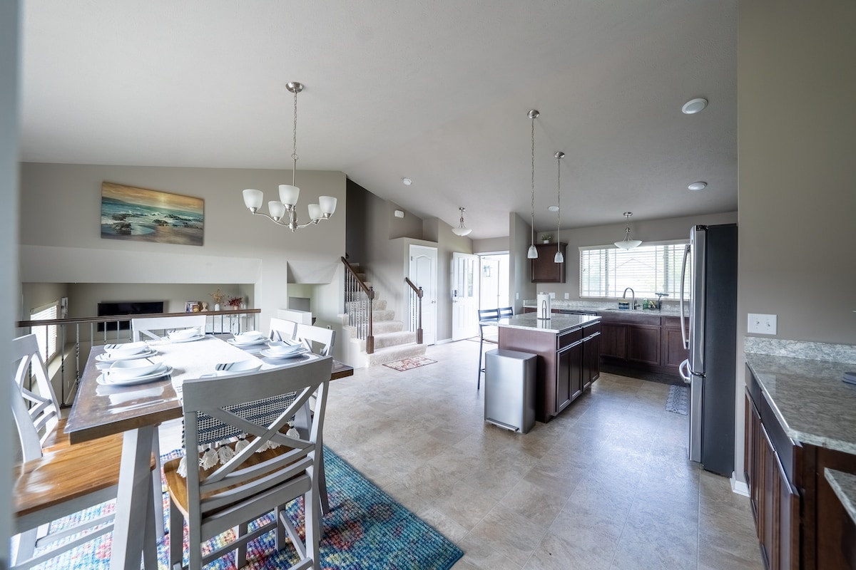 La nostra casa accogliente e tranquilla si affaccia sul sentiero, sul torrente e sulla prateria. Facile accesso all'interstatale, ai ristoranti e allo shopping. Hai accesso privato al nostro seminterrato con camera da letto, soggiorno, bagno e angolo cottura, oltre a giochi da tavolo, libri, ping pong, il nostro cortile e un parco vicino. La camera da letto ha un letto Cal King e un ambiente scuro e fresco. La camera familiare include due letti singoli e un materasso a due piazze sul pavimento, oltre al nostro ampio e comodo divano e finestre a tutta altezza che mostrano il nostro spazio verde.