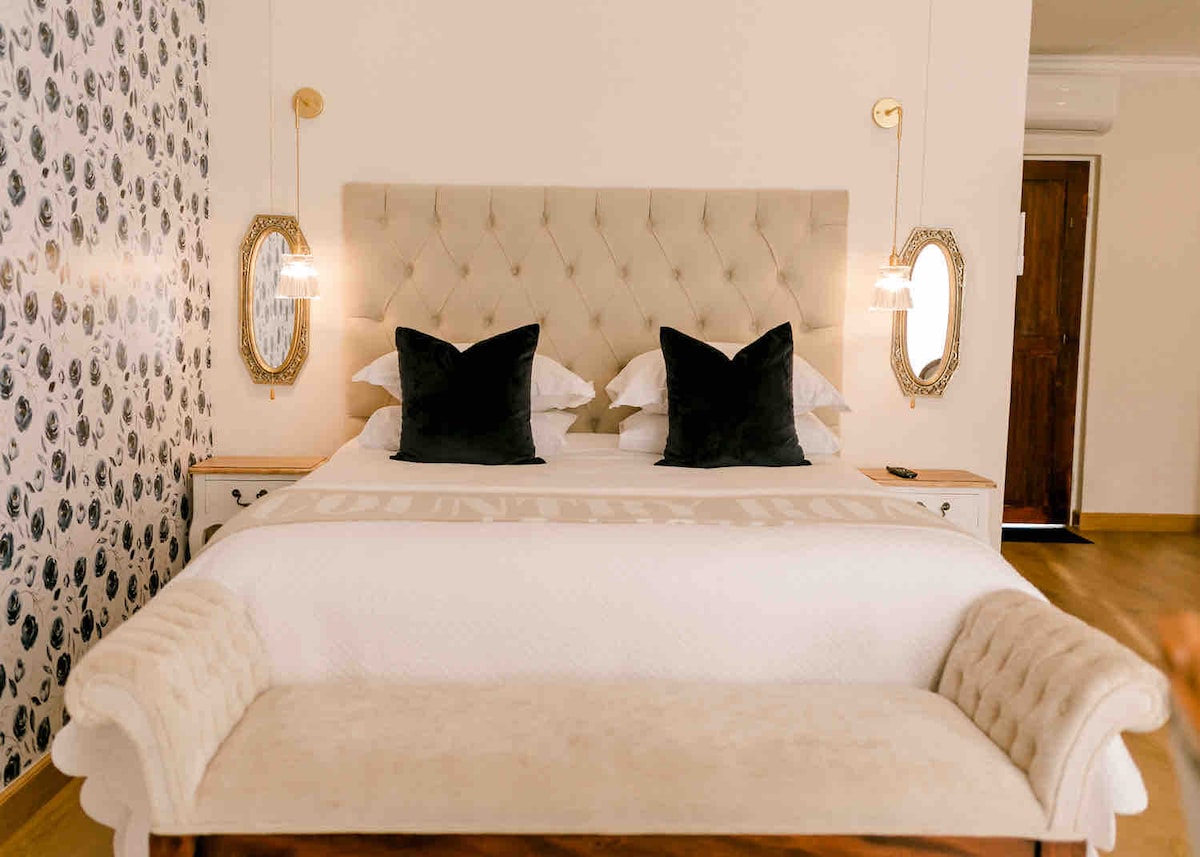 THE STUDIO is a peaceful, fully-equipped, 3-bedroom, 6-sleeper cottage bordering Hilton College. It is conveniently close to Hilton Village, with its shops, excellent restaurants and many coffee shops. The Afro-Scandi decor complements the original art on the walls. The comfy lounge with a fireplace, and luxury beds with crisp cotton linen, will ensure cozy evenings followed by a good sleep. The large patio and outside dining area enjoy spacious farmland views, and bask in the afternoon sun.