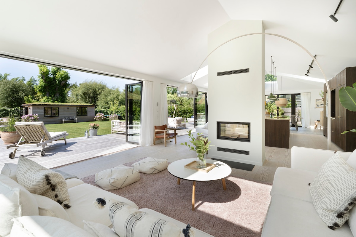 Lusso e benessere a pochi passi dalla spiaggia! Nuovissima casa estiva nordica progettata da un architetto a Munkerup con sauna, spa e recipiente per l'acqua fredda, nonché annesso con bagno e mini cucina su un grande terreno (1236 m ²), molto vicino a una bella spiaggia (2 minuti a piedi). Situato tra l'incantevole Gilleleje e Hornbæk. Perfetto per chi desidera benessere, lusso e tranquillità. Questa è la nostra casa lontano da casa, a 50 minuti da Copenaghen. 🌿 NOTA: prima di prenotare, leggi l'intero annuncio