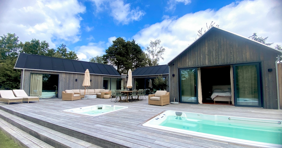 Nuova casa con spa all'aperto, vicino alla spiaggia e al bosco