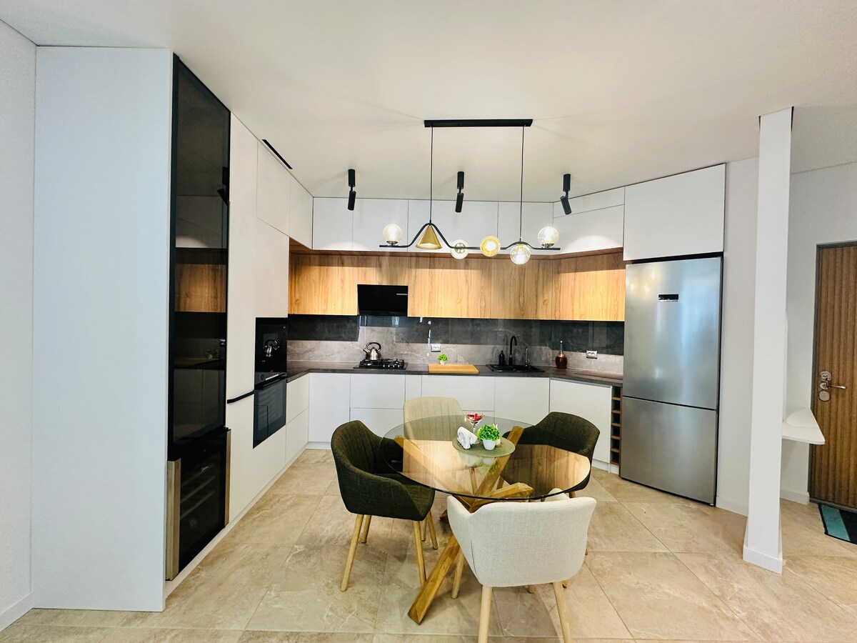 L'appartamento è composto da 2 camere da letto,soggiorno, angolo cottura. L'appartamento ha tutto per cucinare,articoli da toeletta, articoli da toeletta come: sapone, gel doccia, gel doccia,shampoo, carta igienica,asciugamani(due asciugamani a persona). C'è anche:aria condizionata,asciugacapelli, ferro da stiro, ferro da stiro,ferro da stiro, asciugatrice, bollitore,bollitore,forno a microonde,frigorifero. Appartamento a 200m dal mare. Nelle vicinanze si trova un delfinario , un parco con un lago, un centro commerciale, un museo archeologico, Europe Square, un tempio, un McDonald' s, Piazza, un parcheggio custodito nel cortile, così come ristoranti sotto la casa.