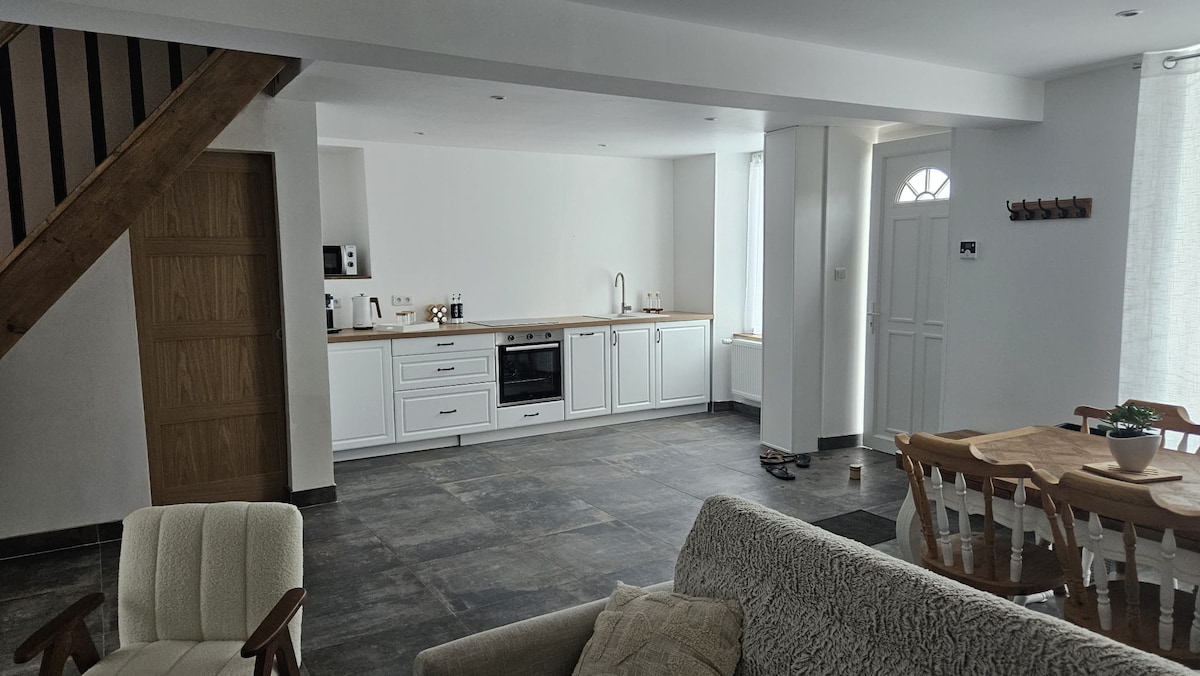 Berry house al bordo di un torrente, in assoluta tranquillità, a 7km da Sancerre, si compone di un ampio soggiorno con sala da pranzo e salotto, una cucina completamente attrezzata, un bagno con doccia e una camera da letto (con vista sul torrente) con un letto di 160 cm. Avrai accesso al giardino, con sedie a sdraio a disposizione e uso privato della terrazza sul bordo dell'acqua senza vis-à-vis: vista libera sulla campagna. Viviamo nella casa a schiera. Le biciclette possono essere messe a disposizione.
