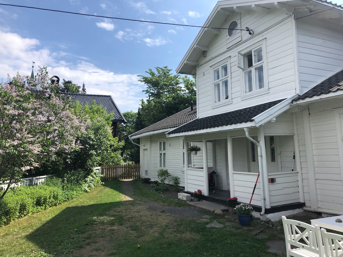 Zona tranquilla nella periferia di Oslo verso l'aeroporto di Oslo. Accogliente appartamento di alto livello con parcheggio, a breve distanza in treno/autobus dal centro di Oslo/Lillestrøm. Vicino a Ikea, centro sciistico coperto SNØ e parco nazionale Østmarka. Qui puoi rilassarti dopo una giornata faticosa! L'appartamento si trova al piano terra con ingresso indipendente e terrazza soleggiata e fa parte di una casa. Dispone di una camera da letto con letto matrimoniale e divano letto nel soggiorno per 2 persone. Bagno con vasca e doccia. Gli ospiti vengono dalla Norvegia e dal Regno Unito.