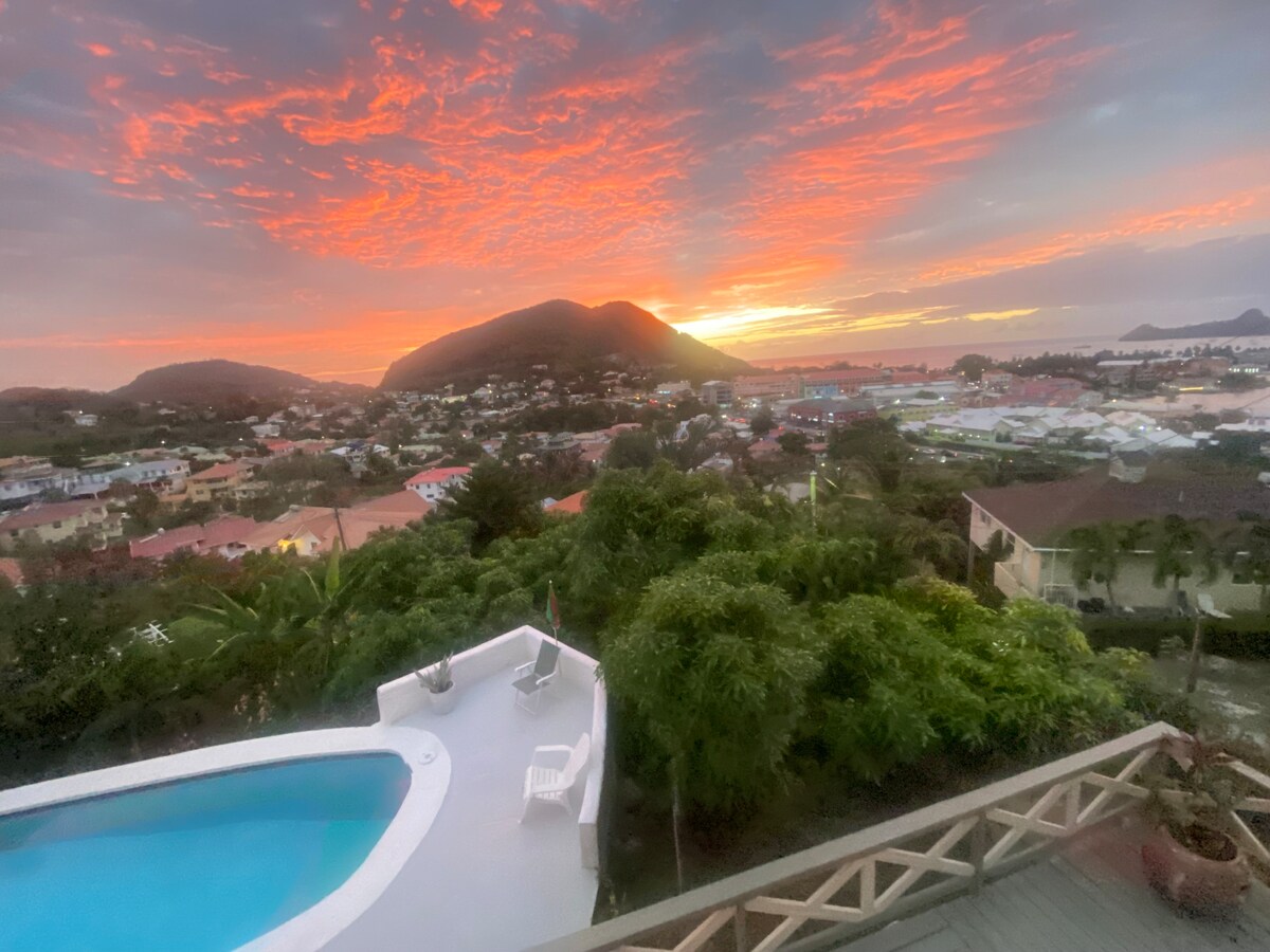 La pensione La Panache si trova sopra Gros Islet e il porto turistico su una collina con una splendida vista sull'oceano. Piscina a sfioro con vista mare. Nuovo condizionatore silenzioso. Balcone privato all'aperto con un'accogliente amaca. L'appartamento è dotato di angolo cottura di base, bagno e ampio letto matrimoniale con zanzariera. Asciugamani e lenzuola sono inclusi. La connessione Internet wireless è veloce e gratuita in tutta la struttura, compresa la piscina. Offriamo il self check-in 24 ore su 24.