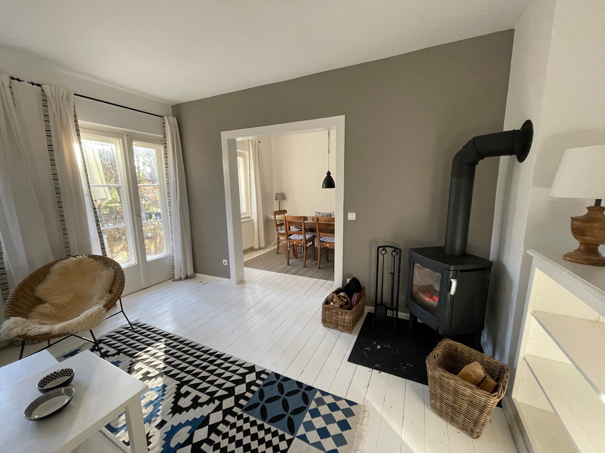 Ti diamo il benvenuto in questa rimessa unica (90mq). Costruito nel 1922, è stato accuratamente restaurato e convertito con materiali di alta qualità. Questa romantica dimora si trova nella villa di Potsdam, con alberi da frutto e da noce secolari, direttamente sulla riva del lago Jungfernsee. In estate, è possibile godersi una nuotata nel lago prima di colazione, se lo si desidera. A due passi dal famoso Glienicke Bridge. Per decenni durante la guerra fredda, il ponte è stato il luogo in cui venivano scambiate spie.