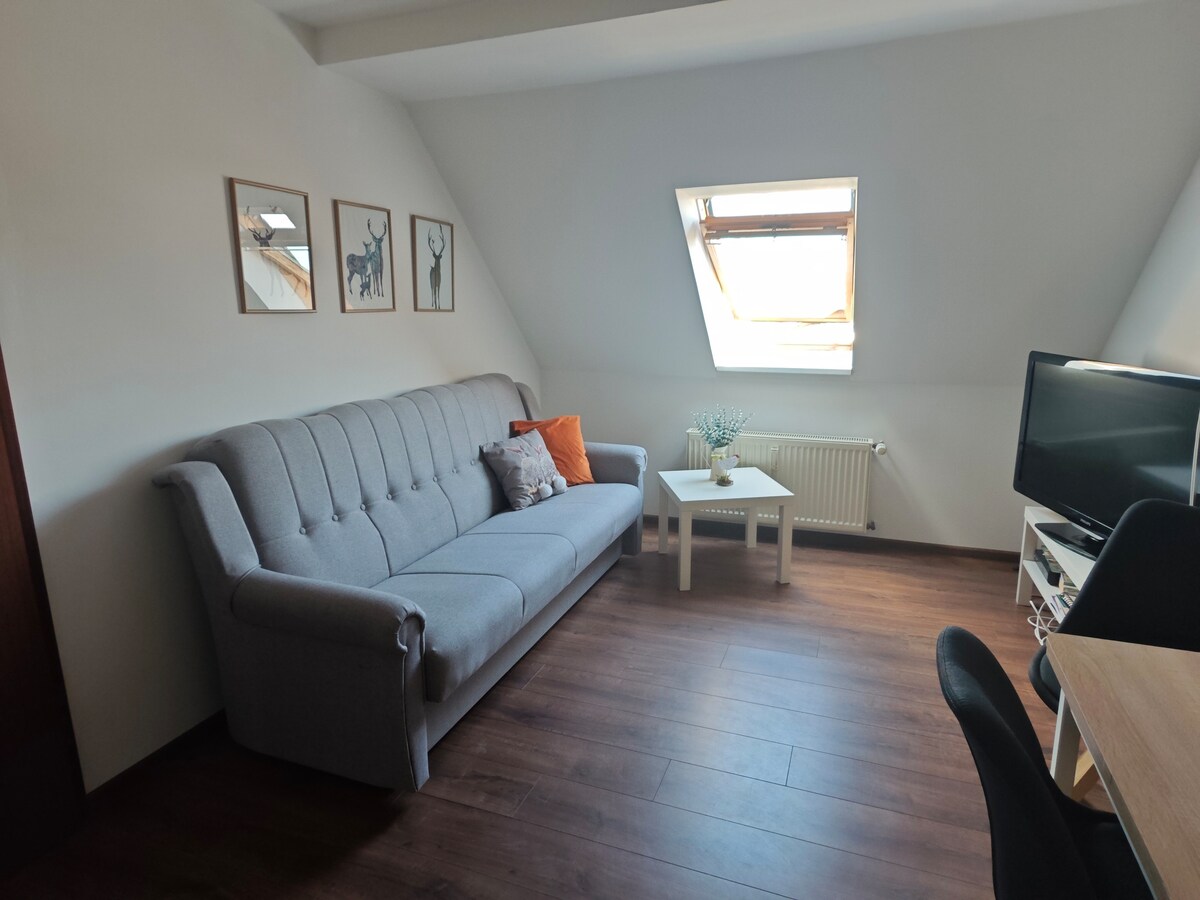 Affittiamo 2 appartamenti. Stai guardando l'unità più piccola. (L'unità più grande che trovi qui: https://www.airbnb.de/rooms/21642508) La stalla del 1891 è stata ristrutturata in una casa di 3 unità nel 2016. I giardini circostanti sono un work in progress. La proprietà è piuttosto grande e si può sempre trovare un posto tranquillo e silenzioso al sole. Il cielo notturno è meraviglioso per osservare le stelle. Fino a 10 famiglie di cicogna nidificano nel villaggio da aprile ad agosto di ogni anno.