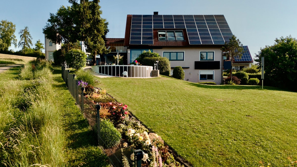 un luogo di energia immerso nella natura. Qui in Franconia centrale troverai una casa in armonia con la natura e secondo Vasati, il design degli interni secondo la tradizione indiana, con grandi finestre e spazi aperti, uno stile di arredamento moderno, semplice ed esclusivo e il più alto livello di tecnologia. Sperimenta la pace, la chiarezza e l'ordine e vivi un momento indimenticabile, il cui ricordo ti accompagnerà d'ora in poi e ti farà sempre sorridere. Insta: Deluxe_CasaNaturaS42