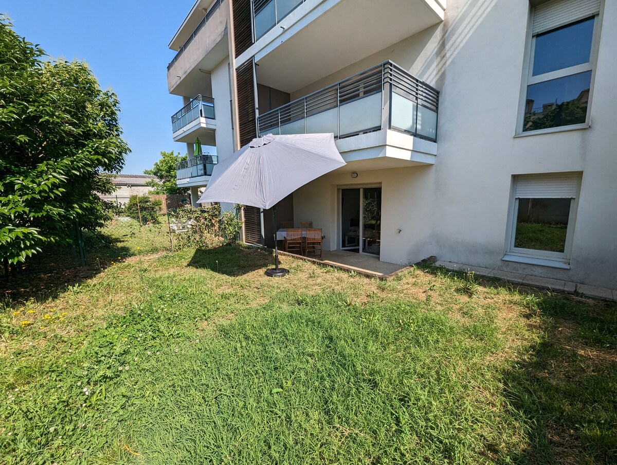 Alloggio perfetto per soggiorni brevi o lunghi, completamente attrezzato e arredato con gusto. Idealmente situato a 400 m dalla stazione di Meyzieu e dal tram T3, a 20 minuti da Lione in tram, a 5 minuti dallo stadio OL e a 15 minuti da Eurexpo. Gli ospiti possono godere di un giardino privato di 35 m² e di un posto auto nel seminterrato. L'appartamento può ospitare 4 persone, con una camera da letto che ha un comodo letto matrimoniale, e un divano letto nel soggiorno. Sono forniti lenzuola e asciugamani.
