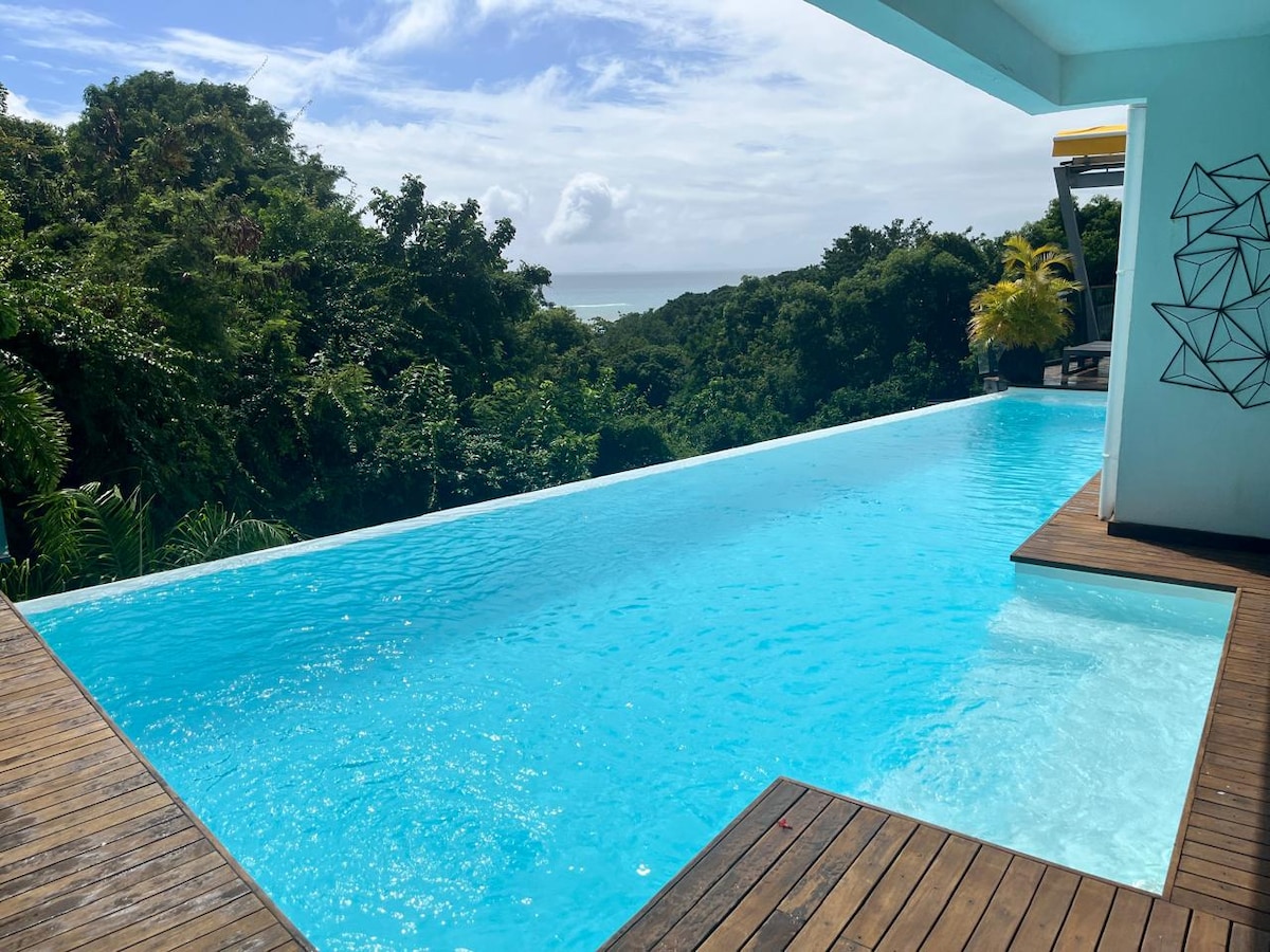 Villa Baïa - Vista mozzafiato sulla baia di Saintes con piscina privata Baïa ti invita a vivere un'esperienza unica tra la natura e il Mar dei Caraibi. Completamente climatizzata, questa villa combina comfort moderni e fascino tropicale e dispone di una piscina a sfioro privata. Perfetto per rinfrescarsi mentre si gode gli alisei, l'ampia terrazza e il giardino offrono un ambiente ideale per rilassarsi. Questa villa è la scelta perfetta per un soggiorno lussuoso e tranquillo.