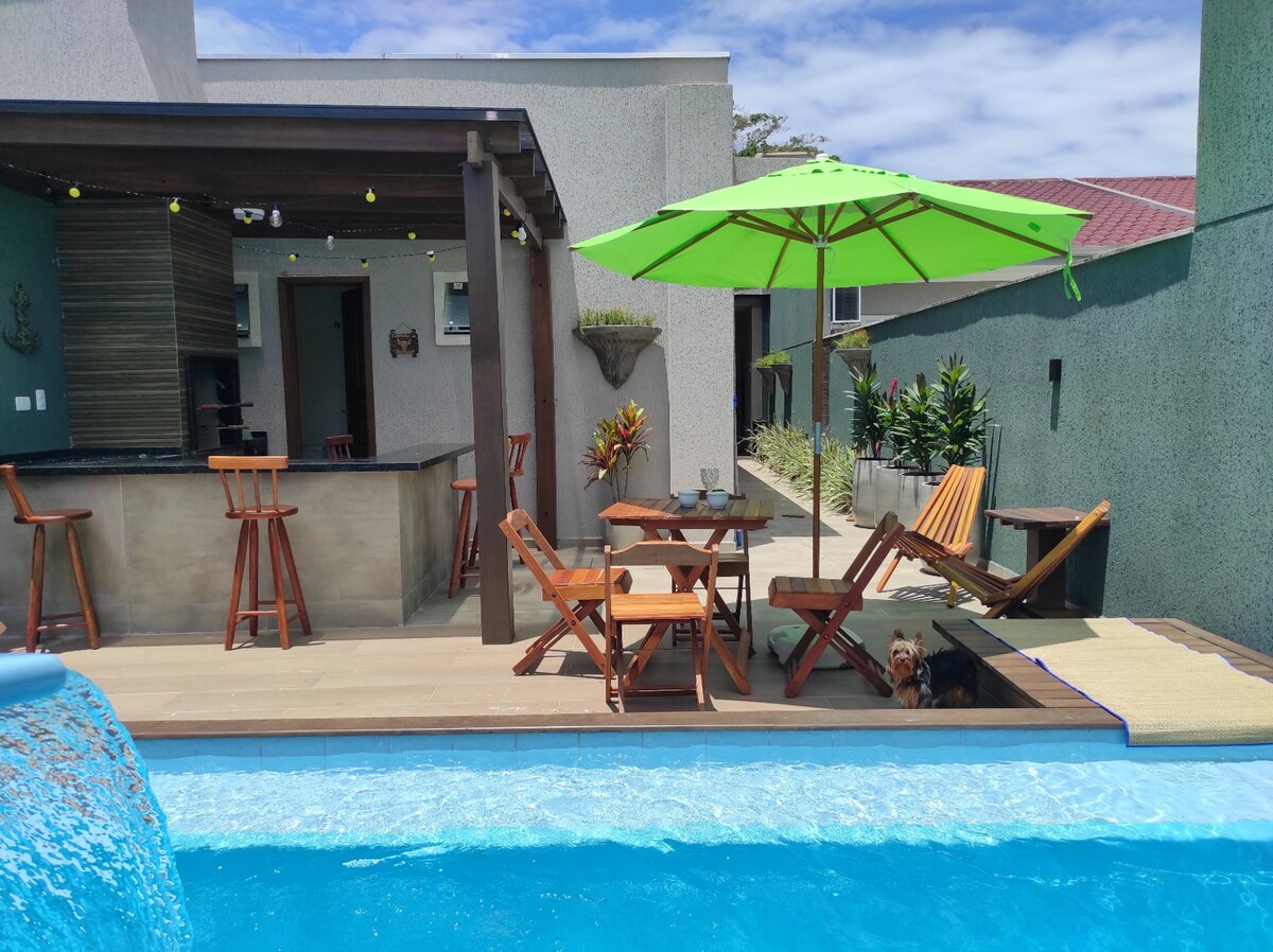 Casa privata di un piano per massimo 6 persone, con un'area esterna surreale, di fronte alla spiaggia di Barra do Saí. Porta solo ciò che mangerai, berrai e indosserai, poiché la casa è completa. Wi-Fi, aria condizionata, lenzuola, asciugamani, shampoo, balsamo, attrezzatura da spiaggia completa, 2 smart TV con IPTV, barbecue e 2 biciclette da usare a piacimento. Area esterna con tavolo rustico, pergola, Jacuzzi coperta e riscaldata con idromassaggio e cromoterapia e un fantastico cinema privato. Siamo pet friendly