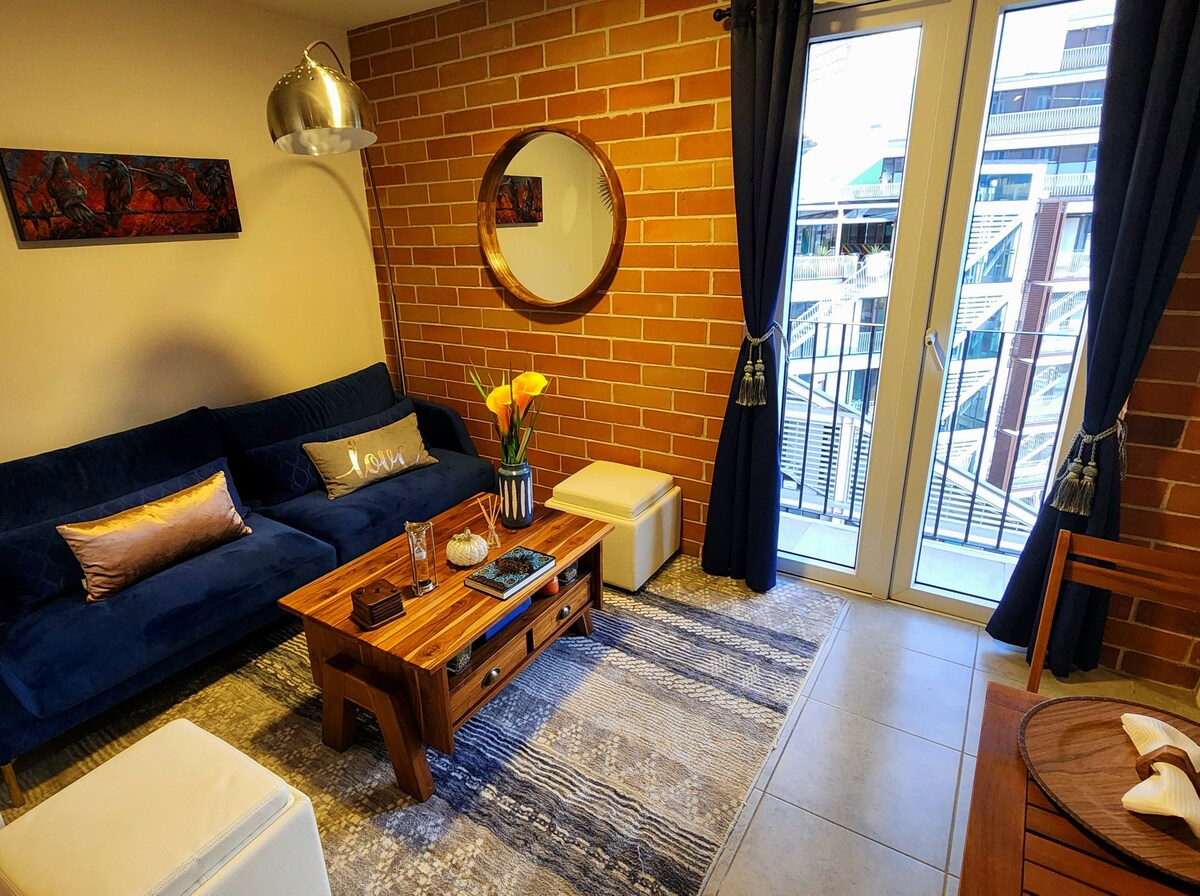 Este apartamento de dos dormitorios es moderno y acogedor, ideal para estancias cortas o largas. Tiene unas vistas espectaculares y está en el corazón de la zona diez, muy cerca de hospitales, centros comerciales y restaurantes para que puedas llegar caminando si así lo deseas. Tiene aire acondicionado en los dormitorios para que descanses y te sientas fresco siempre.