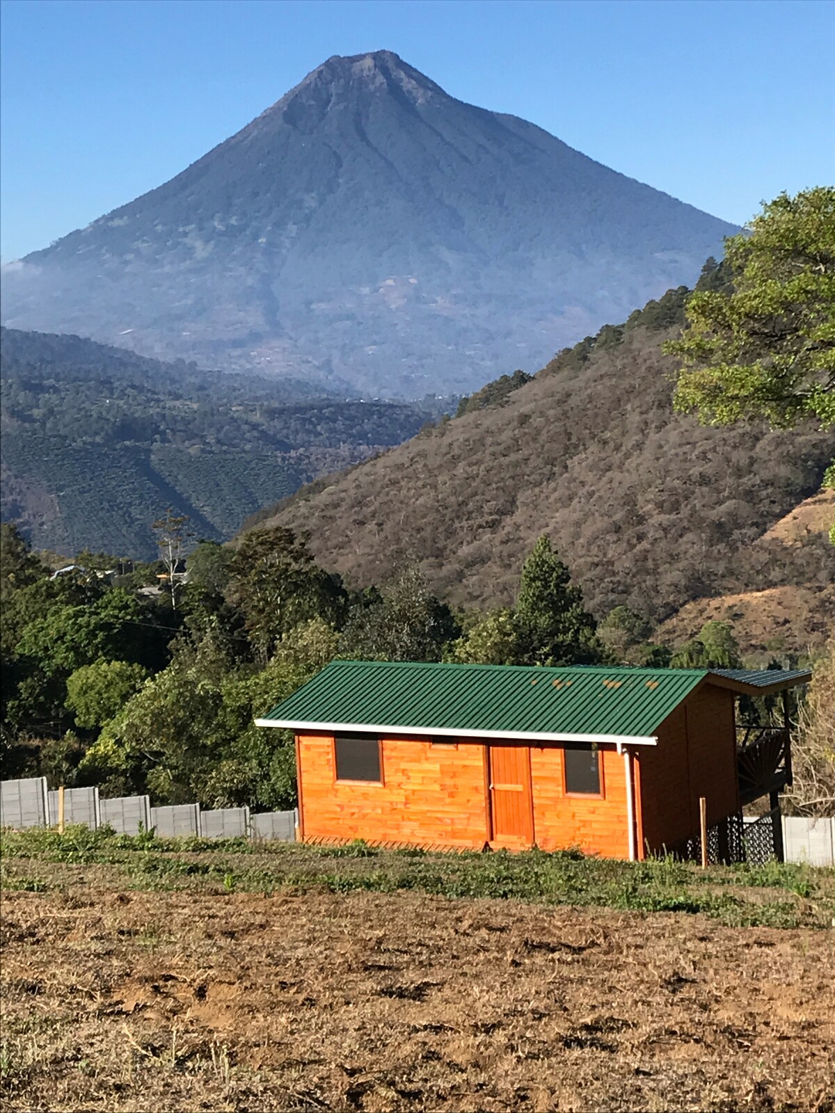 Cabina familiare in legno con vasca idromassaggio. Situato sulle montagne di Antigua Guatemala all'interno del bellissimo giardino lavanda "Jardines de Provenza". Godrai di una splendida vista su tre vulcani (Agua, Fuego, Acatenango). Potrai usufruire della piantagione di fiori di lavanda e del suo profumo incomparabile, e di splendidi paesaggi e tramonti. È possibile percorrere il sentiero "Shinrin Yoku", appositamente progettato all'interno della foresta naturale. Ci troviamo a 12 minuti da Antigua Guatemala.