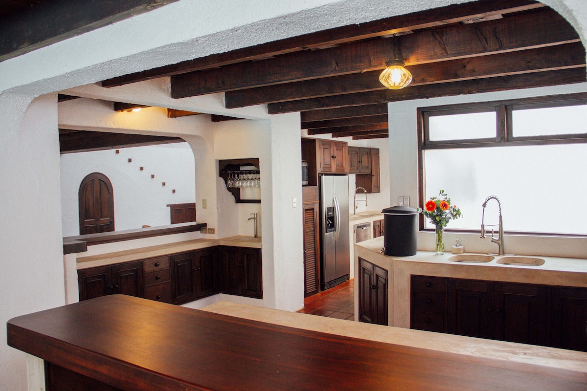 Scopri il cuore di Antigua in tutta comodità da questa lussuosa casa con 6,5 camere da letto, splendidi giardini, ampi patii con vista sul vulcano, una casita privata, una sauna a legna, un forno per pizza e una piscina! Il tuo gruppo avrà ampio spazio per rilassarsi e godersi questa spaziosa proprietà situata nel centro di Antigua. A soli 3 isolati e mezzo dal Parco Centrale, sarai a pochi passi da tutto ciò che Antigua ha da offrire. Sono inclusi il servizio di pulizia giornaliero e il parcheggio per 2-3 auto.