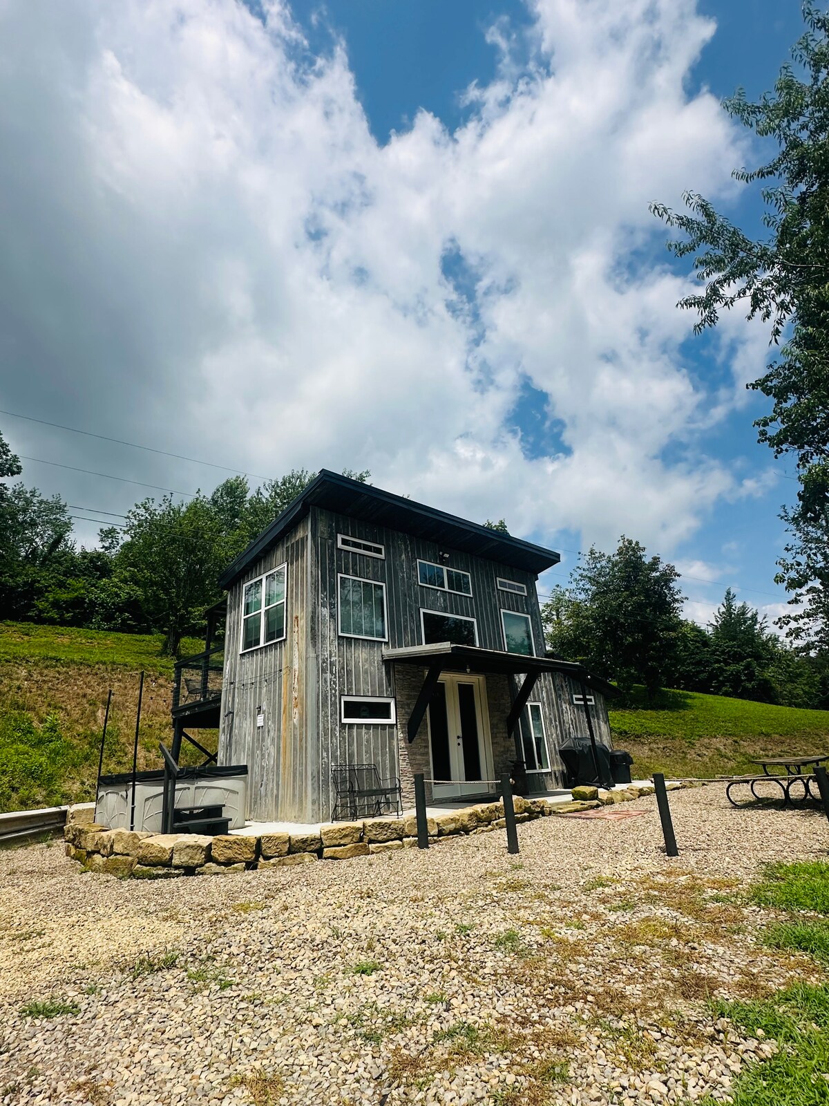 Il Rosedale Timber Lodge è il rifugio tranquillo perfetto. Immerso nelle colline della contea di Guernsey, senza vicini in vista, puoi davvero rilassarti e goderti la natura. Completamente ristrutturato di recente, questo lodge è bellissimo dentro e fuori, con intelaiatura in legno, cucina personalizzata, camino in pietra, laghetto da pesca, campo da pallavolo, campo da wiffleball e sala giochi nel seminterrato. Offriamo anche 3 allacciamenti completi per camper! Dopo il tuo soggiorno, te ne andrai più rilassato e riposato che mai!