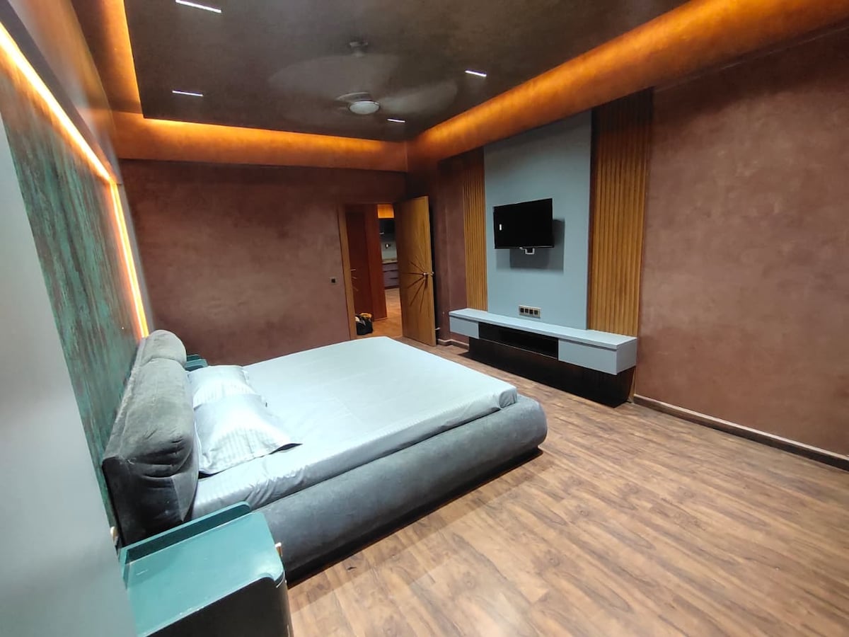 Vivi un'esperienza regale nel nostro lussuoso appartamento Rajwadi 3BHK, dove il fascino del patrimonio si fonde con il comfort moderno. Dotata di ampie camere da letto con letti king-size, eleganti arredi Rajwadi, una grande zona giorno, una cucina completamente attrezzata e bagni eleganti, questa casa unisce tradizione e lusso. Rilassati sul balcone privato, goditi la connessione WiFi ad alta velocità e soggiorna vicino a negozi, ristoranti e attrazioni culturali.