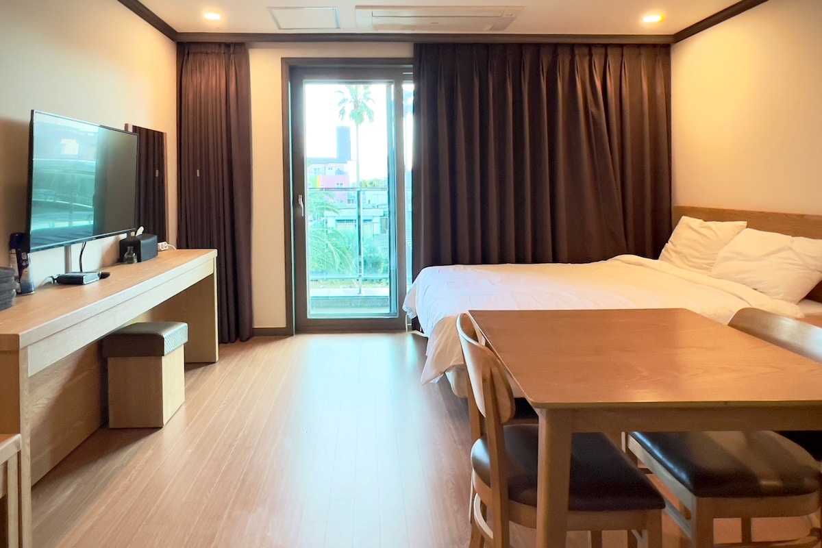 Situato sulla strada costiera di Yongdam dell'aeroporto di📍 Jeju - Puoi vivere la rugiada scintillante e l'incantevole vista del tramonto - Tuttavia, nelle giornate ventose, potrebbe volare via, quindi assicurati di guardarlo dalla stanza! - È divertente guardare la gente correre al mattino e alla sera!🚶♀️🚶