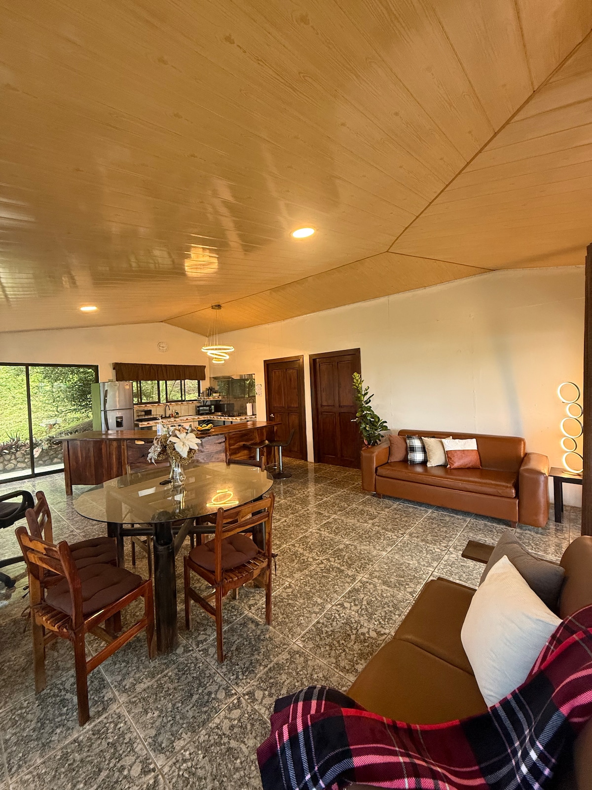 Rifugiati in un alloggio appartato in stile industriale di 163 metri quadrati, immerso in una lussureggiante fattoria a soli 2 km dal cuore di La Fortuna. Questo esclusivo rifugio open space senza finestre dispone di un letto king-size, un divano letto queen-size e una cucina completamente attrezzata. Un sistema di ventilazione crea una brezza rinfrescante in tutta la casa, integrata dall'aria condizionata per un comfort perfetto. Goditi la piscina sul tetto con lettini, griglia e utensili da bar. Esplora il vicino torrente e assapora la tranquillità di 32.000 piedi quadrati di terreno privato.