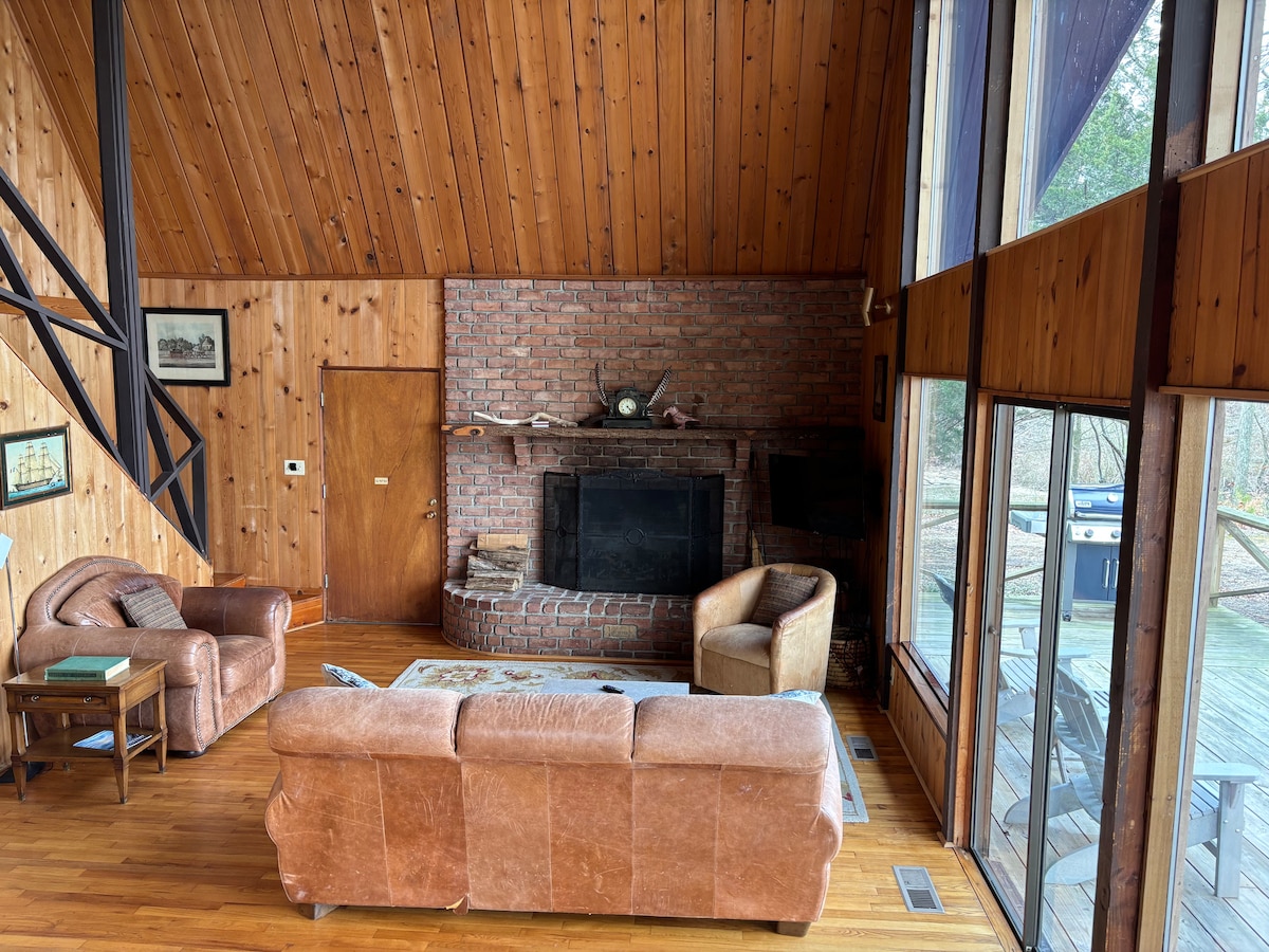 Rilassati nel nostro chalet nascosto in una strada privata a pochi minuti da Chestertown. Ci troviamo su 6,5 acri boschivi, arroccati su una scogliera di 30 metri che si affaccia su Churn Creek, un affluente della baia di Chesapeake. Viste idilliache sull'acqua incorniciate da una tettoia di querce. Goditi la natura mentre ti rilassi all'aperto vicino al focolare o passeggia fino al "punto" per ammirare la fauna selvatica, oppure prendi un kayak per esplorare il torrente e gli uccelli acquatici. I cervi arrivano attraverso i boschi e sono spesso avvistati nella proprietà.