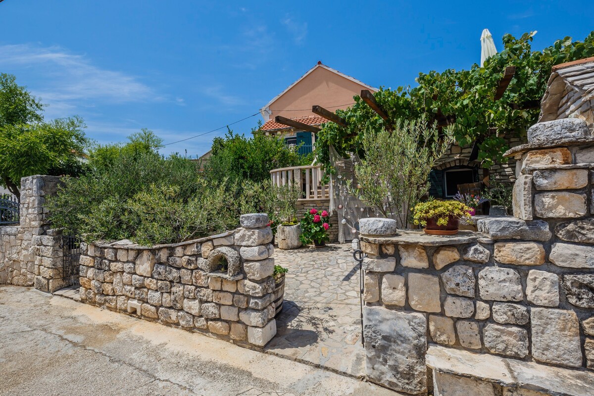 Casa in pietra arredata con amore in posizione tranquilla, 3 camere da letto, grande terrazza barbecue con zona pranzo all'aperto