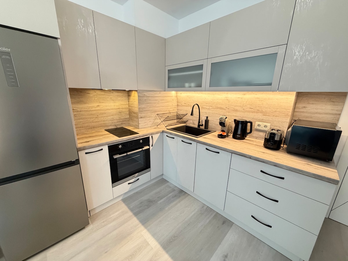 Posto incantevole, tranquillo e accogliente. Appartamento situato nel centro della città ma anche nella foresta. Controllo intelligente delle attrezzature per il massimo comfort possibile. Questo alloggio può garantire la vacanza che desideri. Dispone di due camere private, un bagno, una terrazza e un piccolo cortile. La cucina è fornita di tutti gli elementi essenziali per soggiorni sia brevi che prolungati. Un percorso ecologico conduce ad alcuni dei luoghi più belli della città.