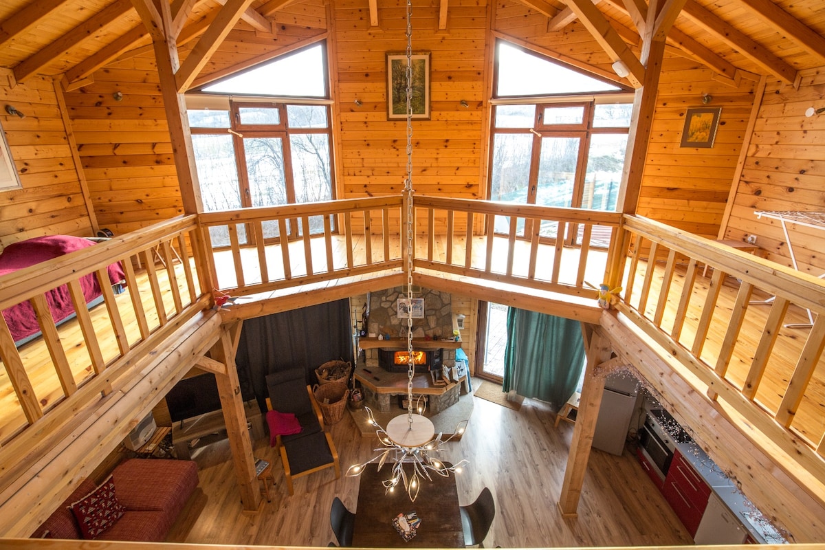 Rilassati in questo luogo unico e tranquillo per una pausa dalla vita quotidiana a solo un'ora di distanza da Sofia. Villa Ganchev è una piccola e accogliente casa in legno, situata in una proprietà di 4,5 ettari, interamente a tua disposizione - ci sono molti alberi piantati, creando un senso unico di vicinanza alla natura. La villa dispone di un unico spazio interno di 30 mq, che ospita un soggiorno, una zona pranzo e cucina, nonché un piccolo bagno al livello 1 e un'accogliente camera da letto con una vista incredibile al livello 2.