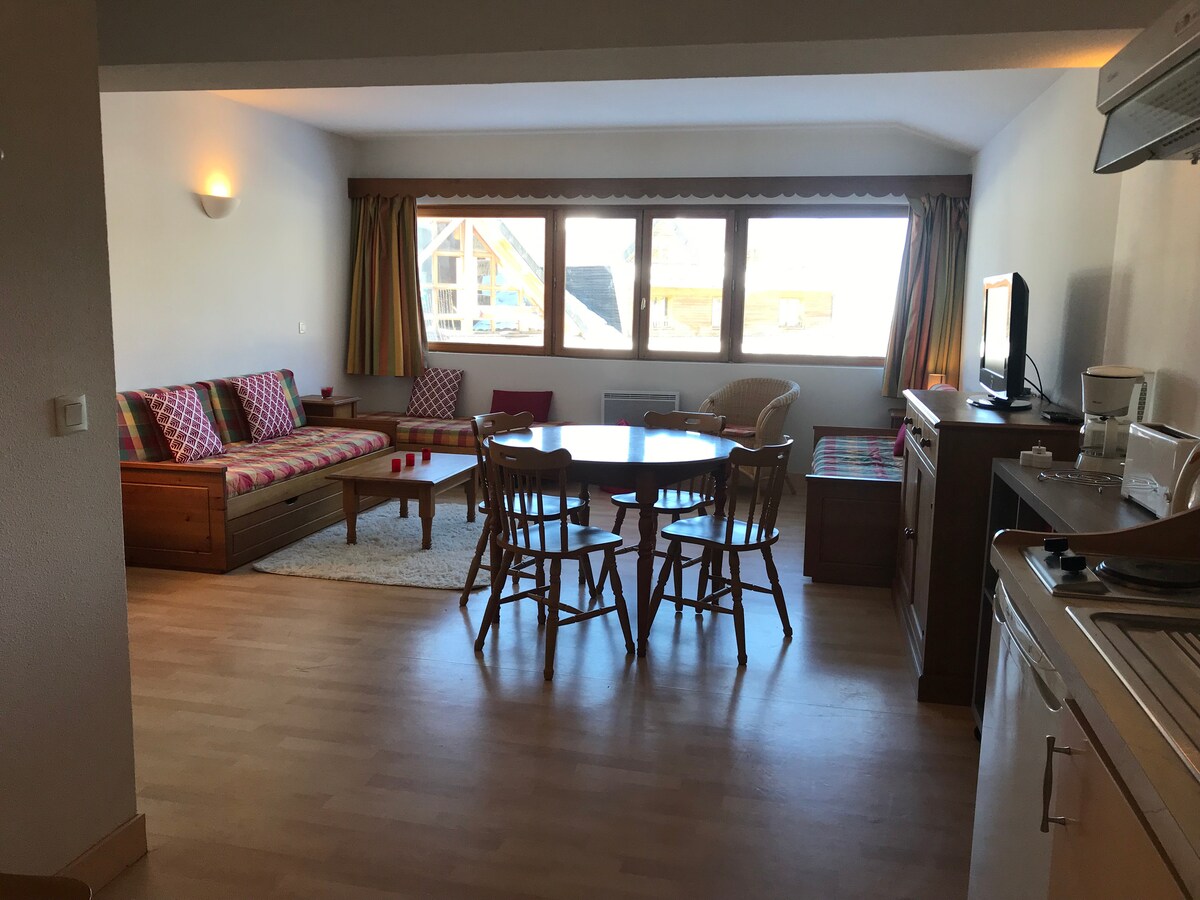 Questo grande monolocale ai piedi delle piste vi sedurrà con le sue travi a vista! Grazie ai suoi 5 posti letto di qualità e a un sistema di divisorio a tende, è ideale per famiglie o gruppi di amici. È perfettamente attrezzato e molto confortevole. Avrete inoltre accesso alla PISCINA, alla SAUNA e alla sala fitness del residence. Abbastanza per rilassarsi dopo una buona giornata di sci o di escursioni! A vostra disposizione anche parcheggio privato coperto, armadietto per gli sci.