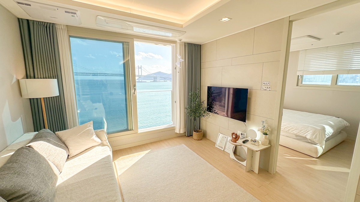 🏖️ Il nostro alloggio è un romantico soggiorno con vista sull'oceano situato a Gwangalli, nel centro di Busan. La spiaggia di Gwangalli, il Minrakhoe Center e il Millak Dermarket distano 3 minuti a piedi. Puoi goderti sia i ristoranti che il mare nelle vicinanze. È arredata con un ampio spazio di circa 20 pyeong, Puoi provare relax ed emozione allo stesso tempo in un ambiente elegante e confortevole. 🌿 📍 Indirizzo e accessibilità • Aeroporto di Gimhae → Circa 30-40 minuti in auto • Seomyeon, Haeundae → circa 20 minuti ciascuno • Grande magazzino Shinsegae a Centum City → Circa 10 minuti in taxi Informazioni sul🚗 parcheggio C'è un ampio parcheggio pubblico, gratuito e senza limitazioni di parcheggio. Anche gli ospiti che arrivano in auto possono usufruirne comodamente. È disponibile il servizio di ritiro a pagamento Contattaci